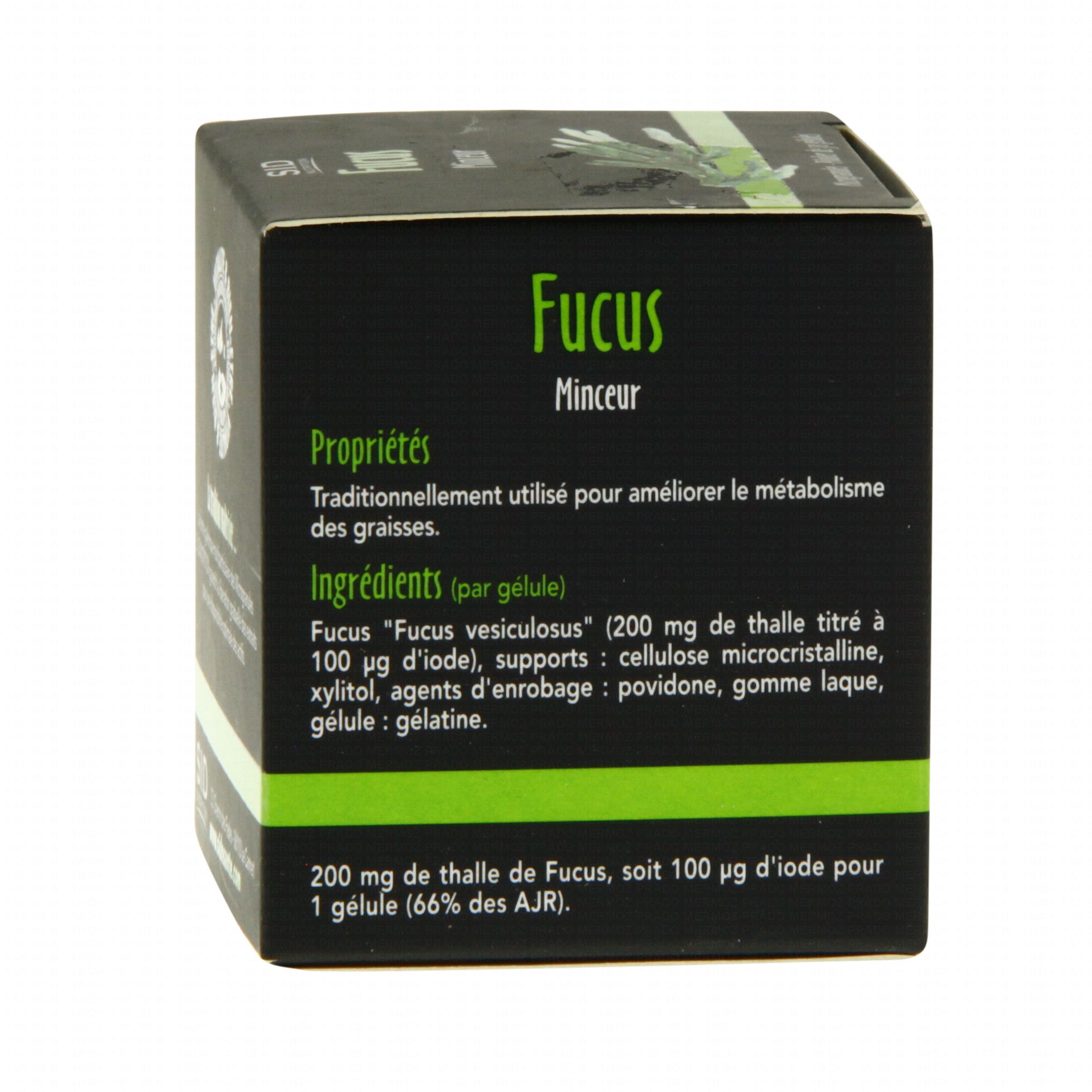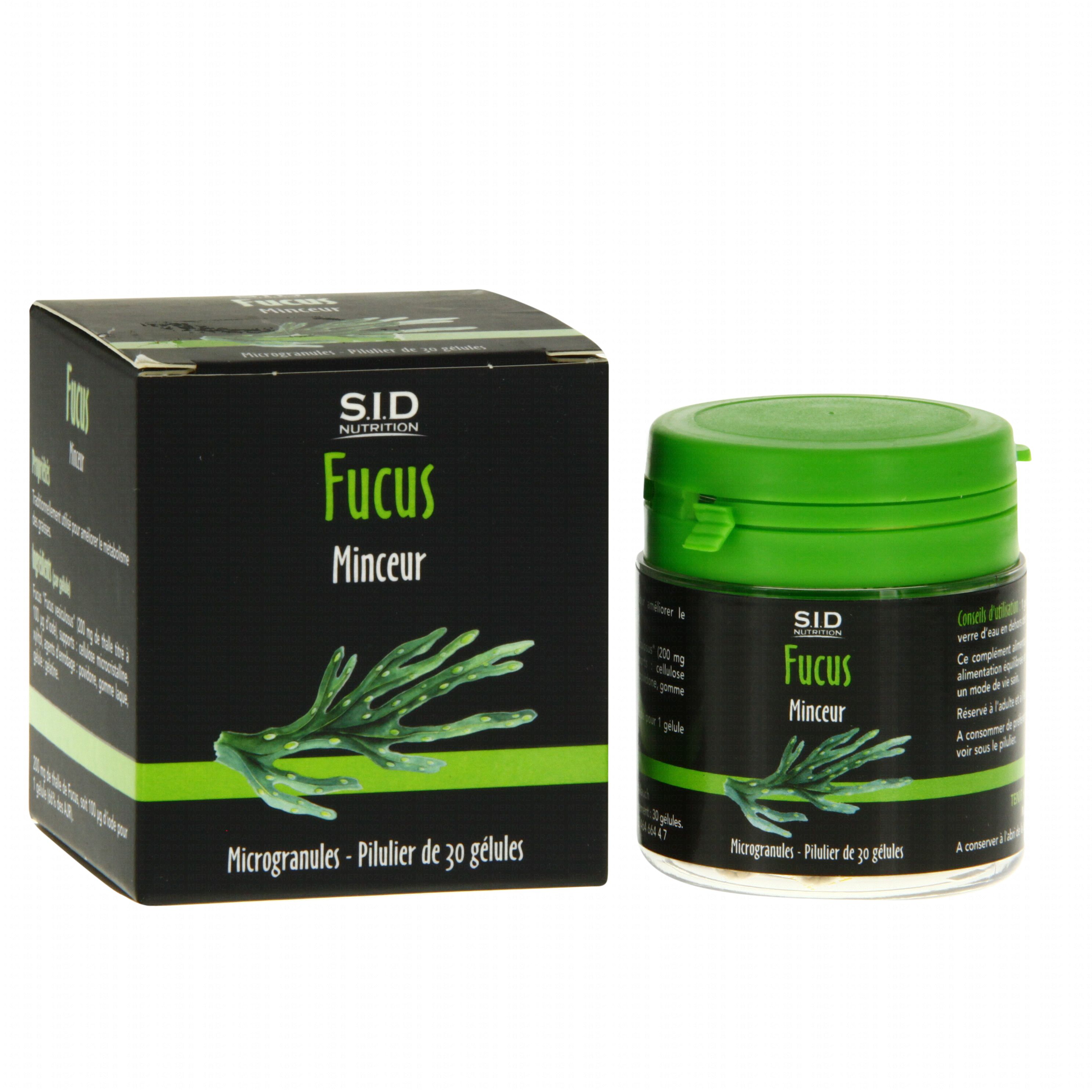 Le fucus, de la famille des fucacées, est une plante dont on utilise le thalle séché, possède une action minceur plus qu'efficace. En effet, sa grande contenance en fibres et la structure mucilagineuse des thalles du fucus offre une sensation de plénitude gastrique et très rapidement grâce aux oligo-éléments et aux vitamines, principes actifs du fucus. Complément alimentaire, minceur.