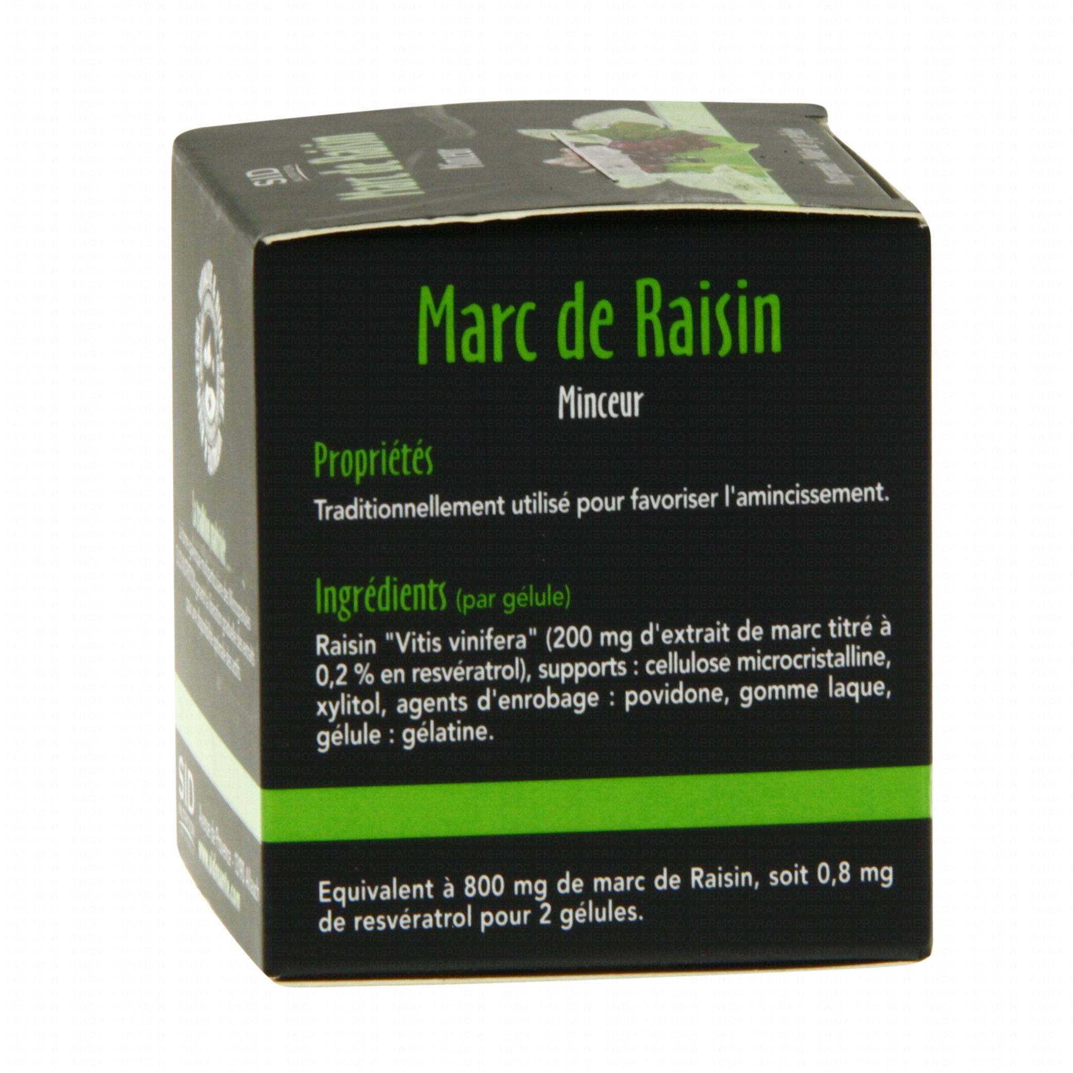 Raisin 'Vitis vinifera' (200 mg d'extrait de marc titré à 0,2 % en resvératrol).