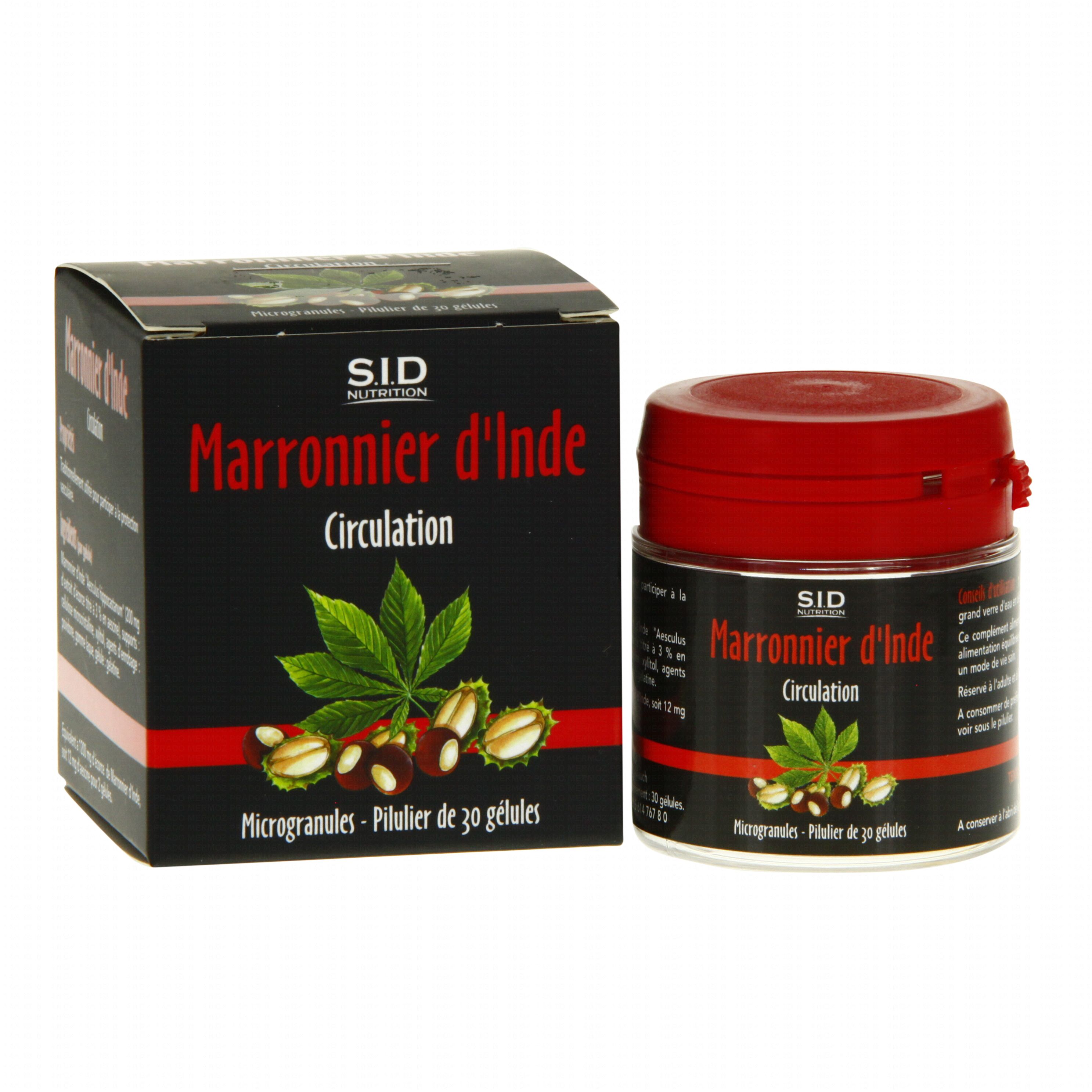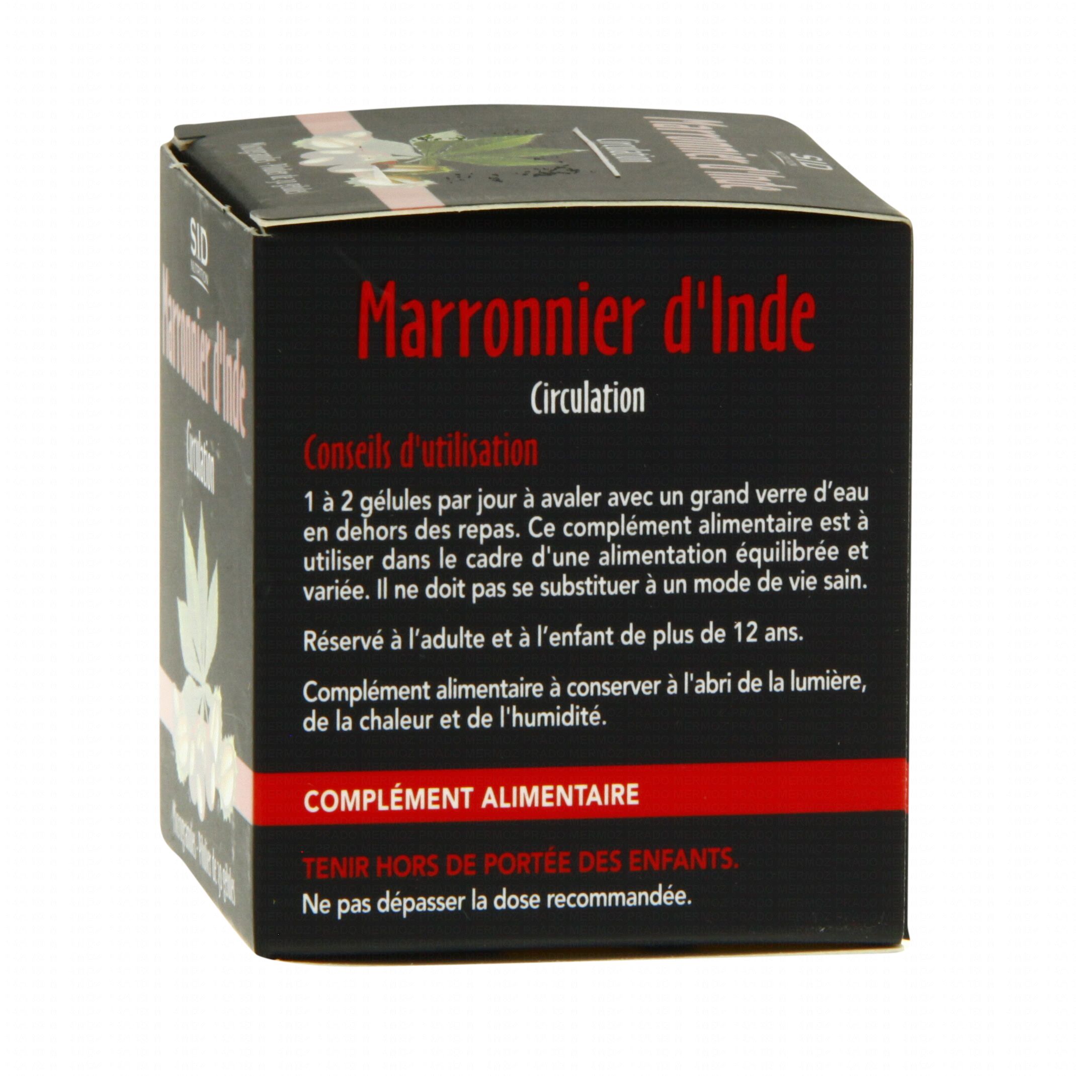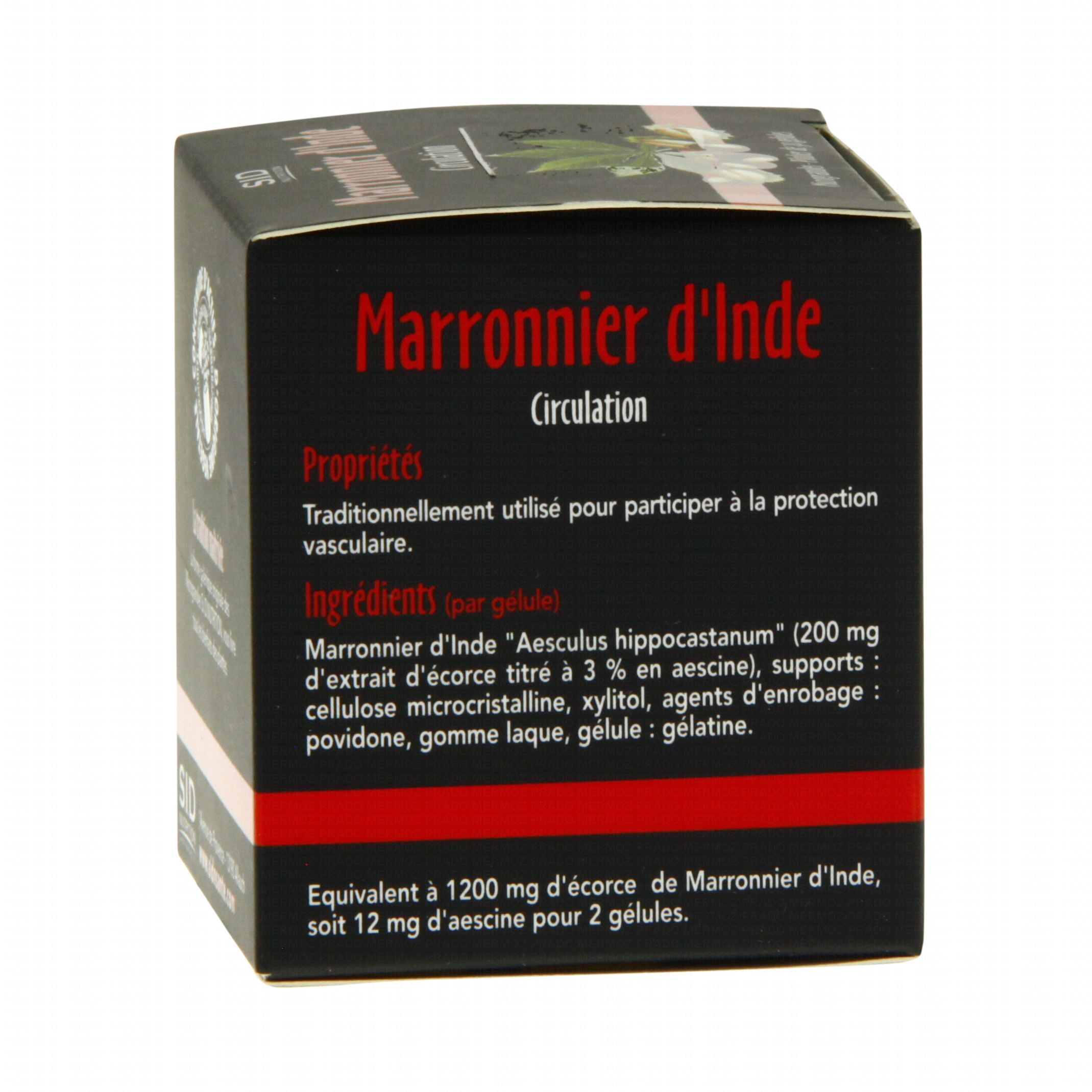 La marronnier d'Inde, de la famille des hippocastanacées, est une plante dont on utilise les graines, l'écorce et les bourgeons pour améliorer la qualité de la circulation du sang dans le corps et favoriser la sensation de jambes légères grâce entre autres aux saponosides triterpéniques, principes actifs du marronnier d'Inde. Complément alimentaire, circulation sanguine, jambes lourdes.