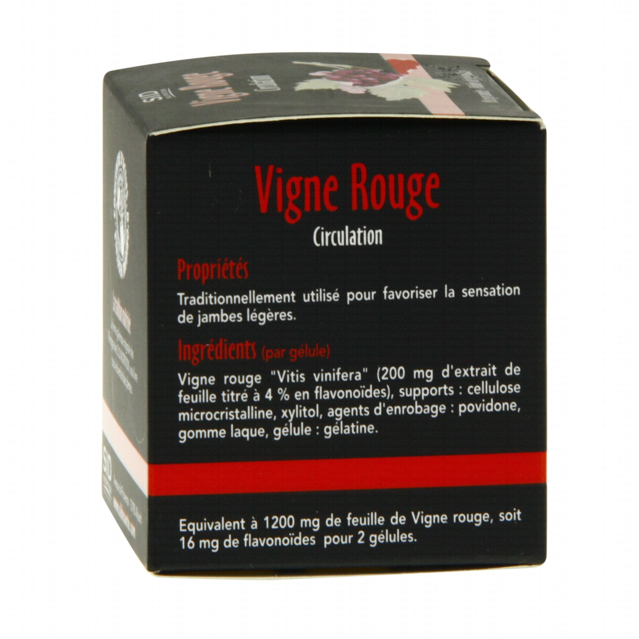 La vigne rouge, de la famille des vitacées, est une plante dont on utilise les feuilles, les fruits (le raisin), la sève et les pépins pour améliorer la qualité de la circulation du sang dans le corps et favoriser la sensation de jambes légères grâce entre autres au resvératrol, principe actif de la vigne rouge. Complément alimentaire, circulation sanguine, jambes lourdes.
