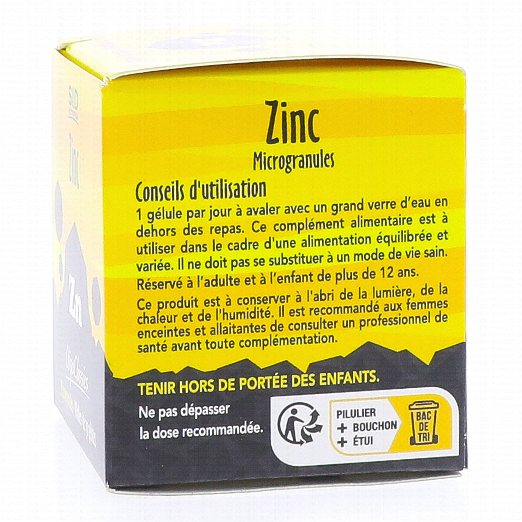 SID NUTRITION Phytoclassics Zinc boîte de 30 gélules contient les éléments suivants :