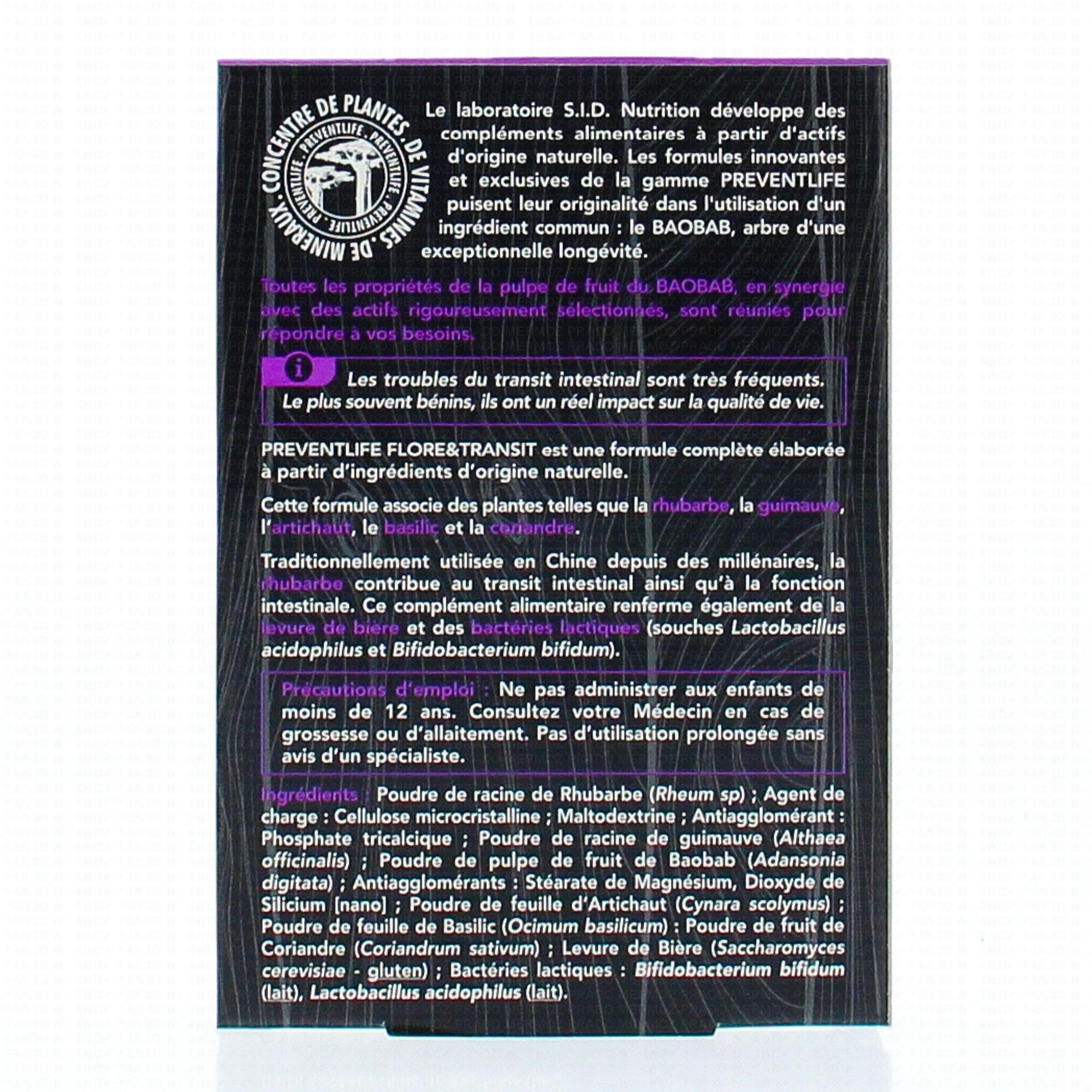 SID NUTRITION PreventLife Flore&Transit boîte de 30comprimés