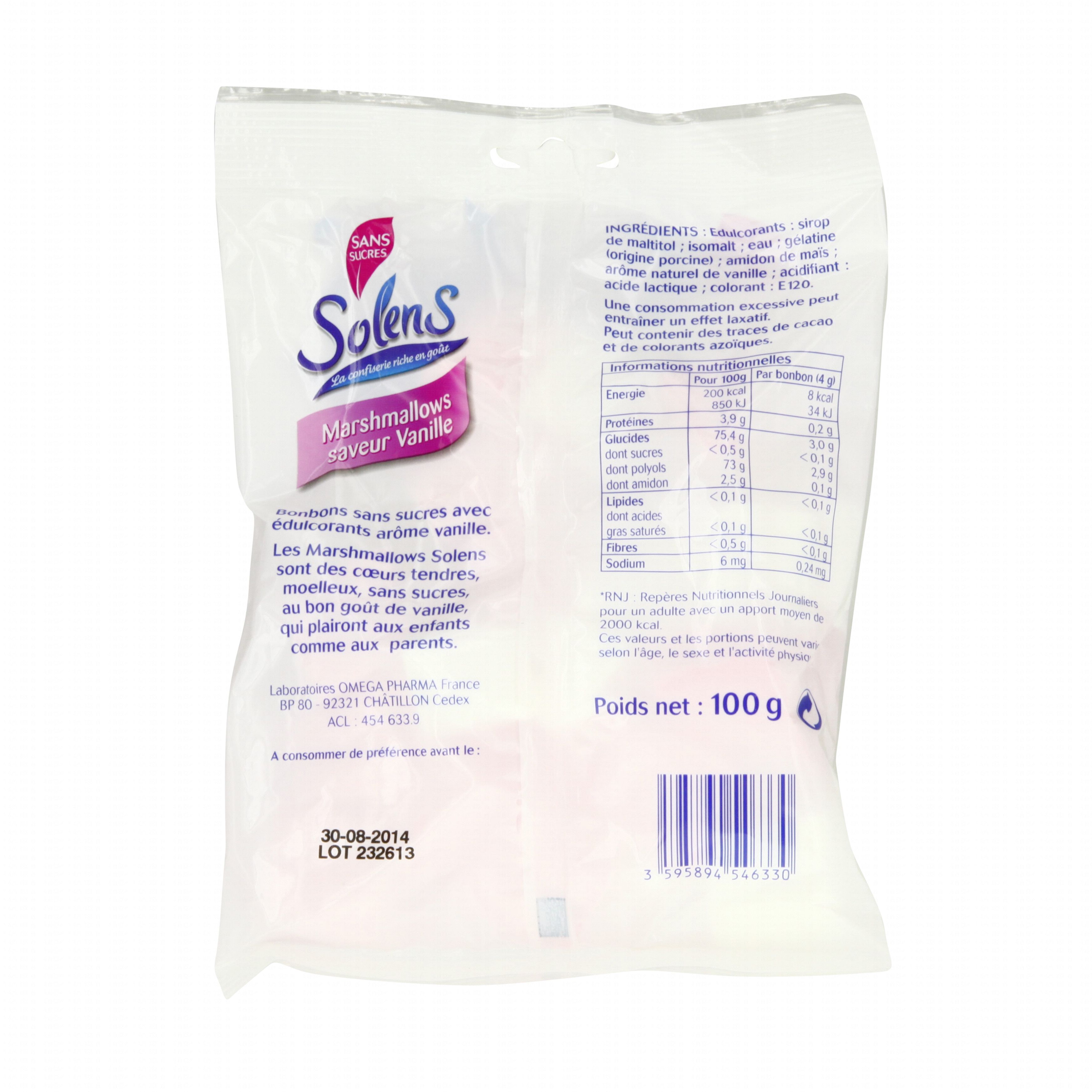 La marque leader de la confiserie en pharmacie Solens offre une panoplie de saveurs pour le plaisir des papilles dans le respect rigoureux de sa recette. Formulées sans colorant, marshmallows à la vanille sont également sans sucre. Sans colorant.