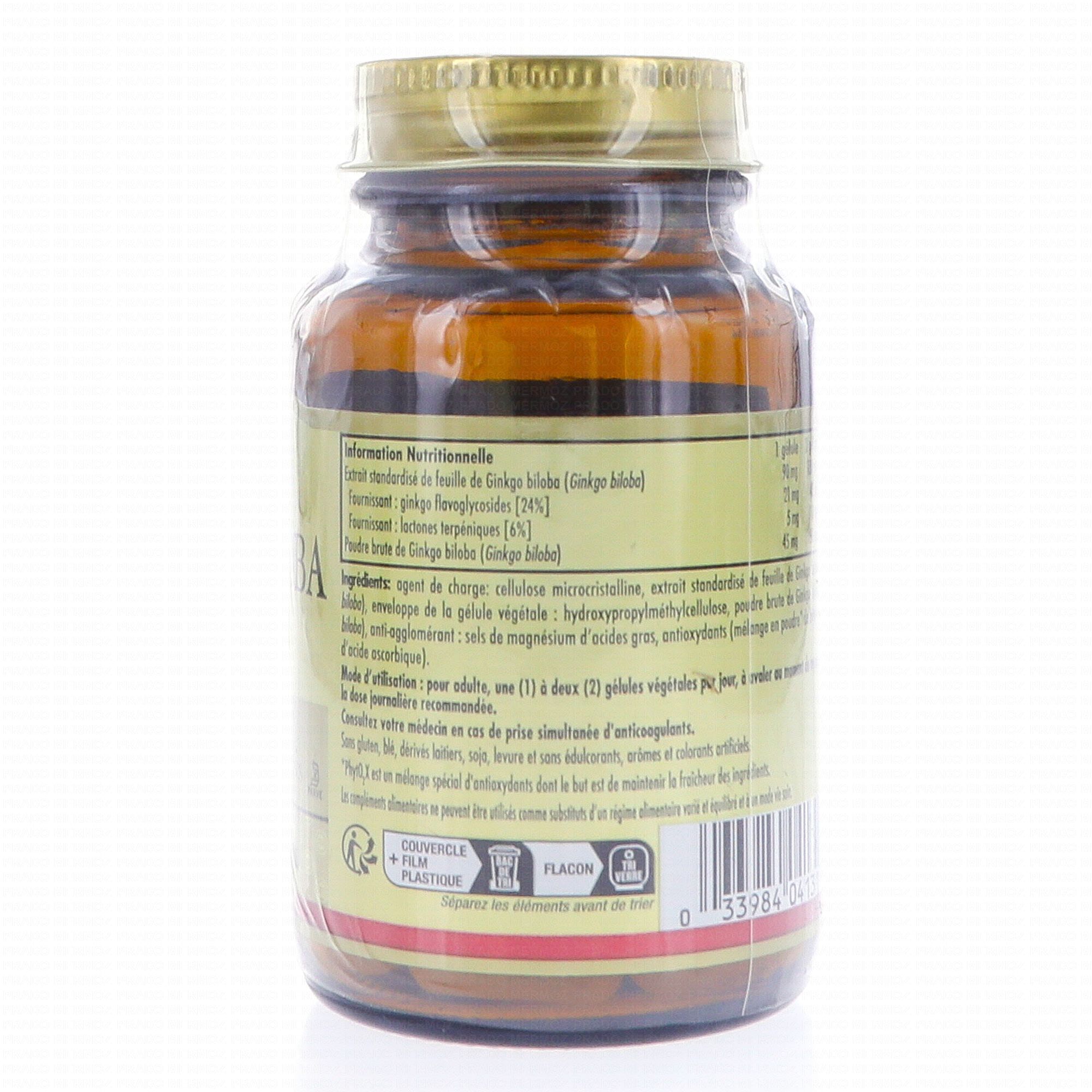 SOLGAR Ginkgo biloba 60 gélules aide à maintenir une bonne fonction cognitive grace au Ginkgo.