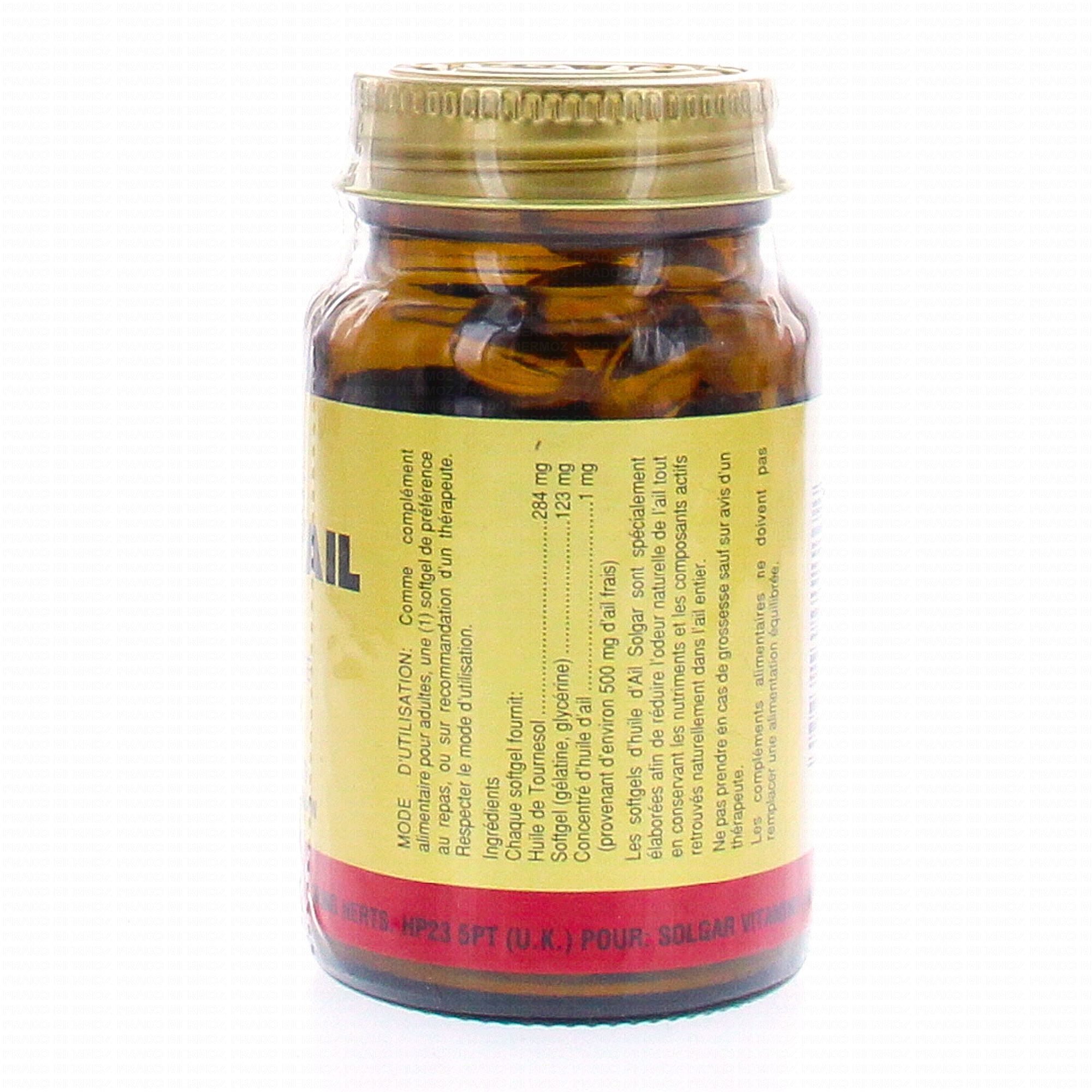 SOLGAR Huile d'Ail 100 capsules contient les éléments suivants :