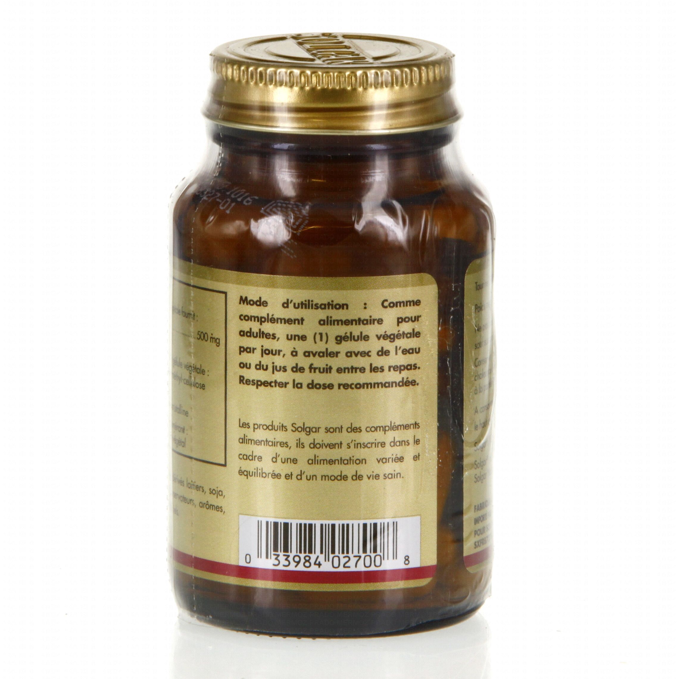 SOLGAR Taurine 500mg 50 gélules contient les éléments suivants :