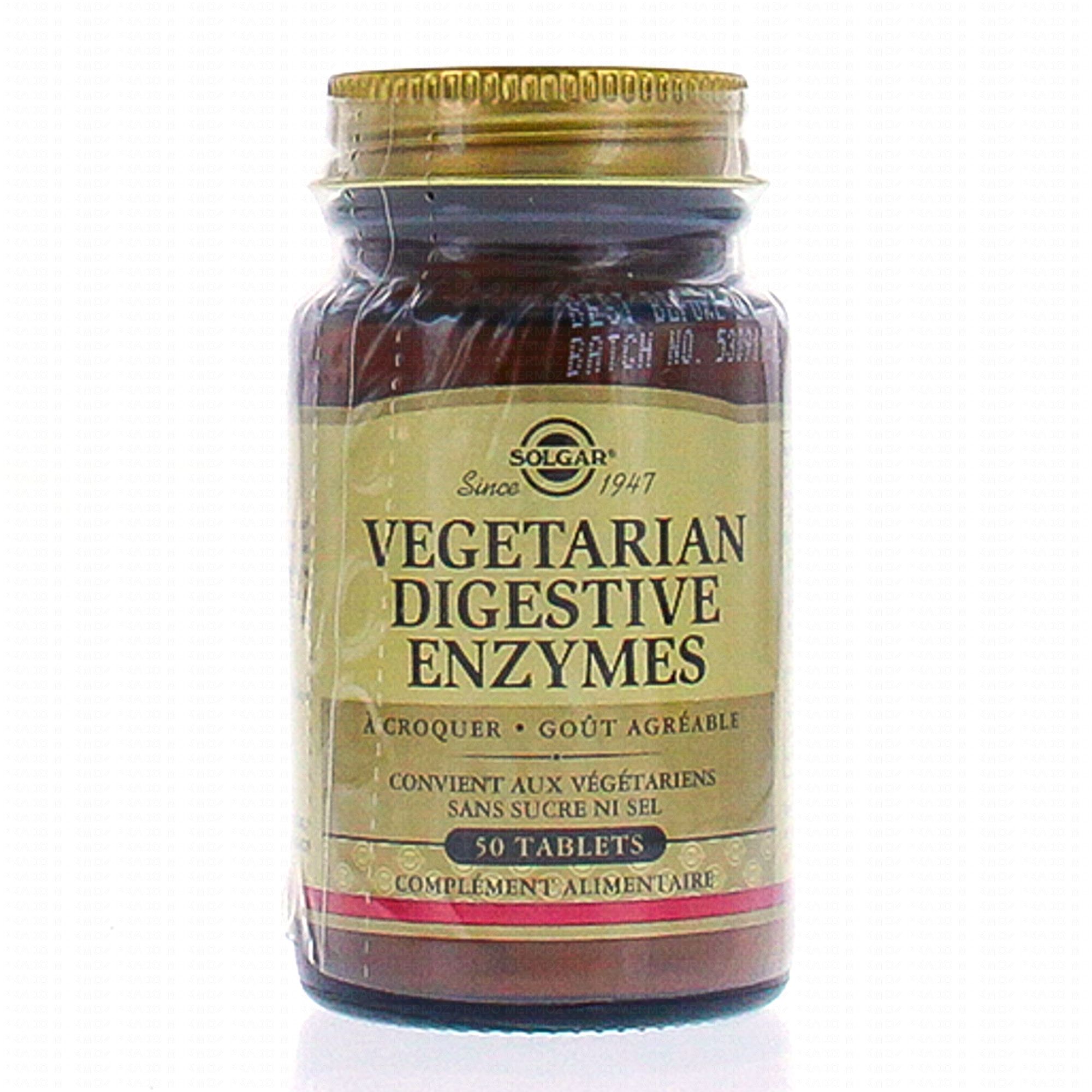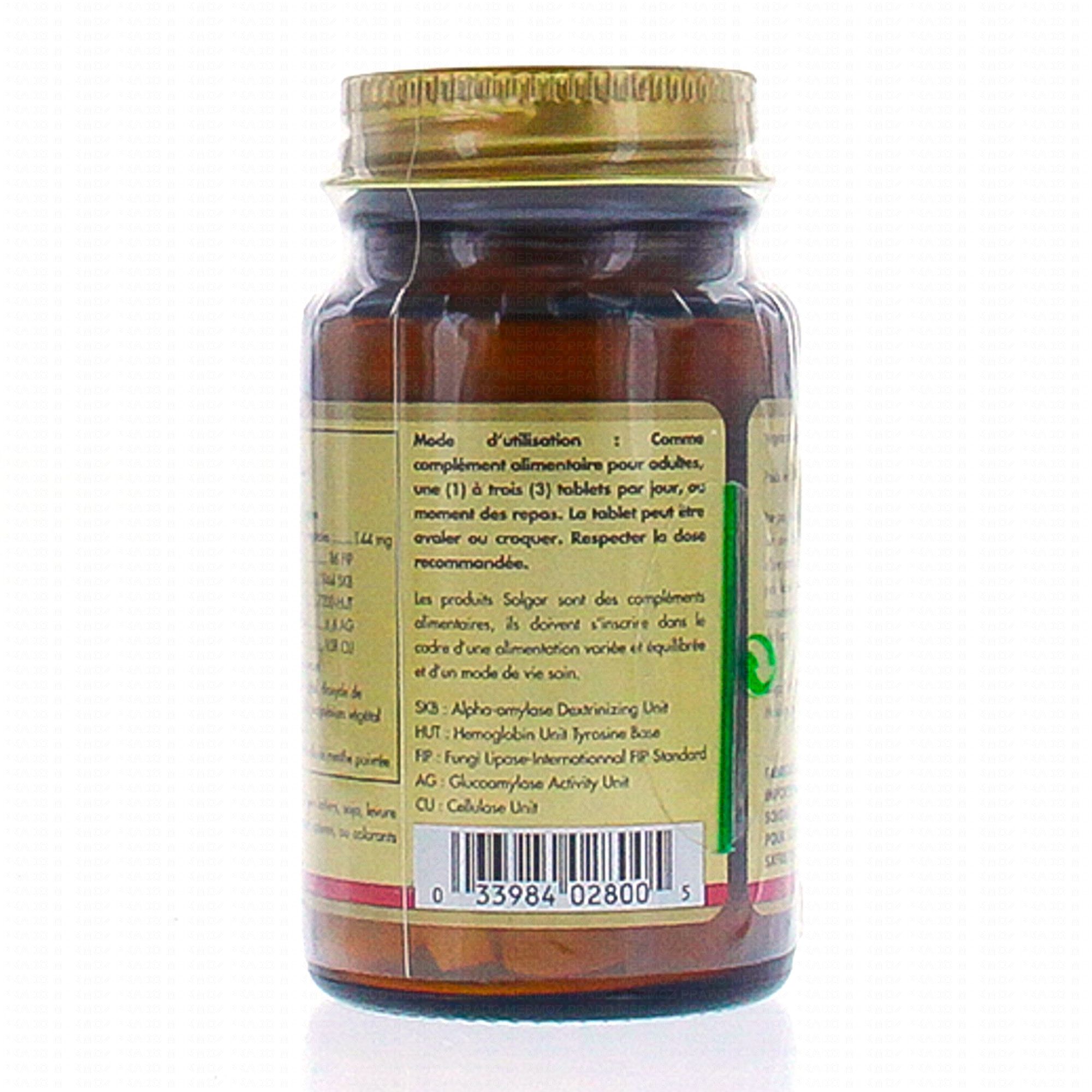SOLGAR Vegetarian Digestive Enzymes 50 tablets contient les éléments suivants :