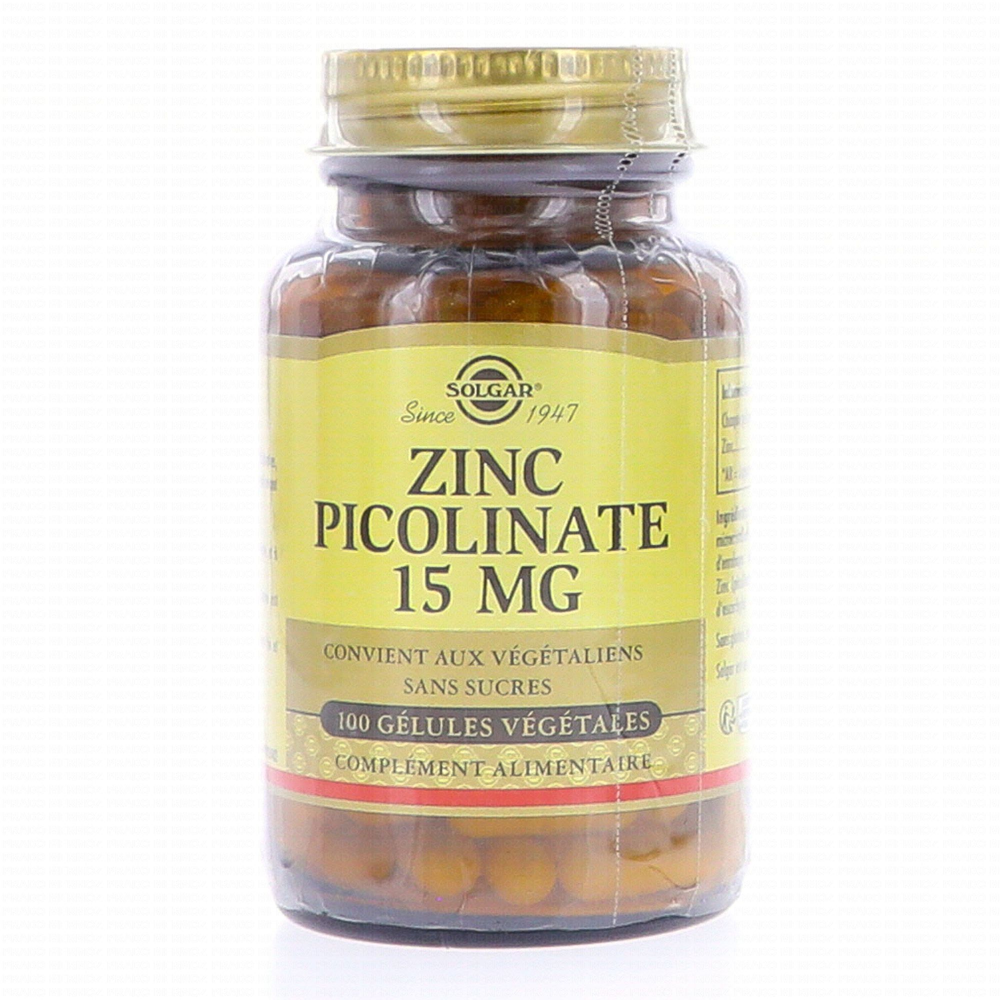 Chaque comprimé de SOLGAR Zinc picolinate 15mg fournit : Zinc (picolinate): 15 mg (soit 150% des AJR*)