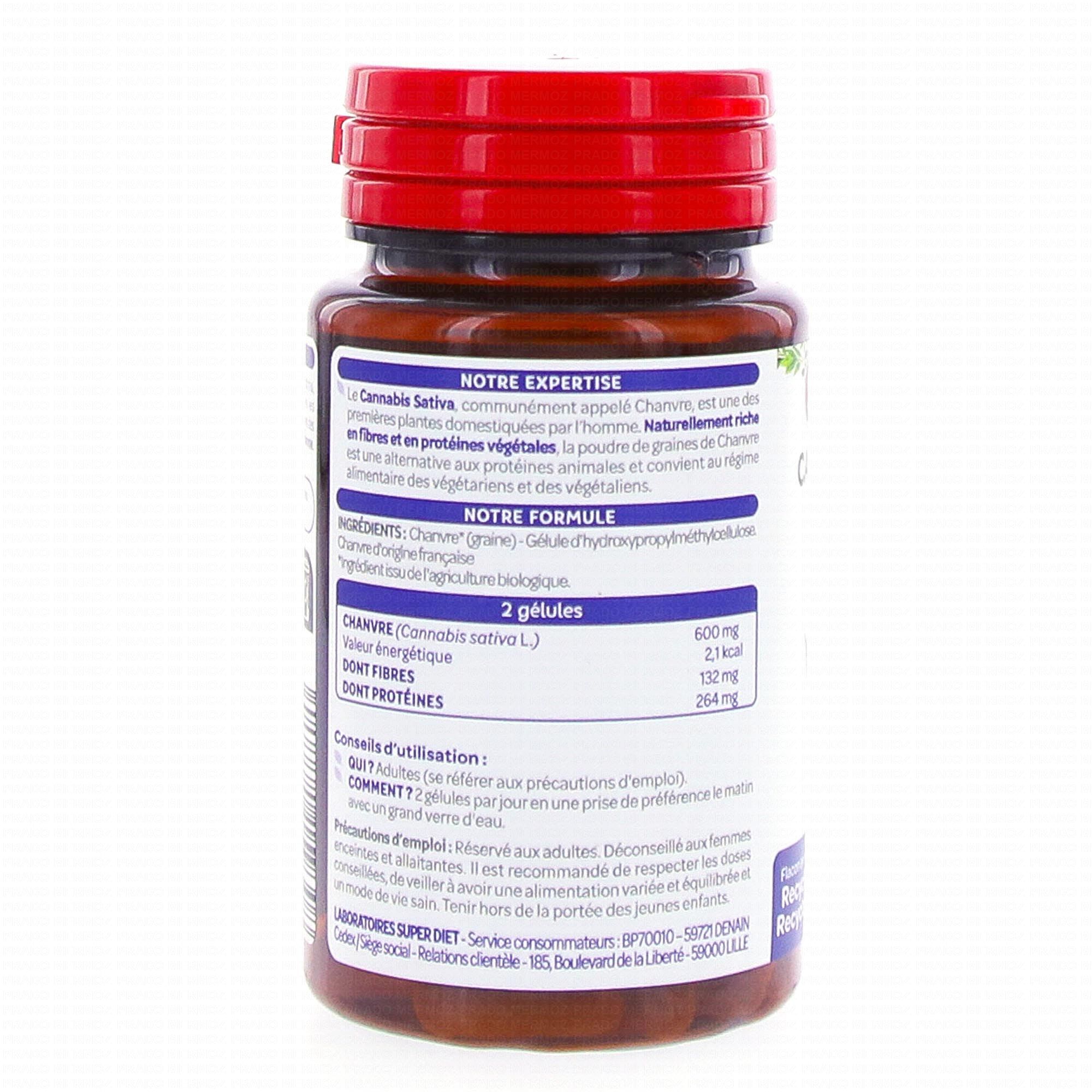SUPERDIET Cannabis Sativa Bio 40 gélules est un complément alimentaire à base de Cannabis Sativa qui apporte naturellement des protéines végétales et des fibres.
