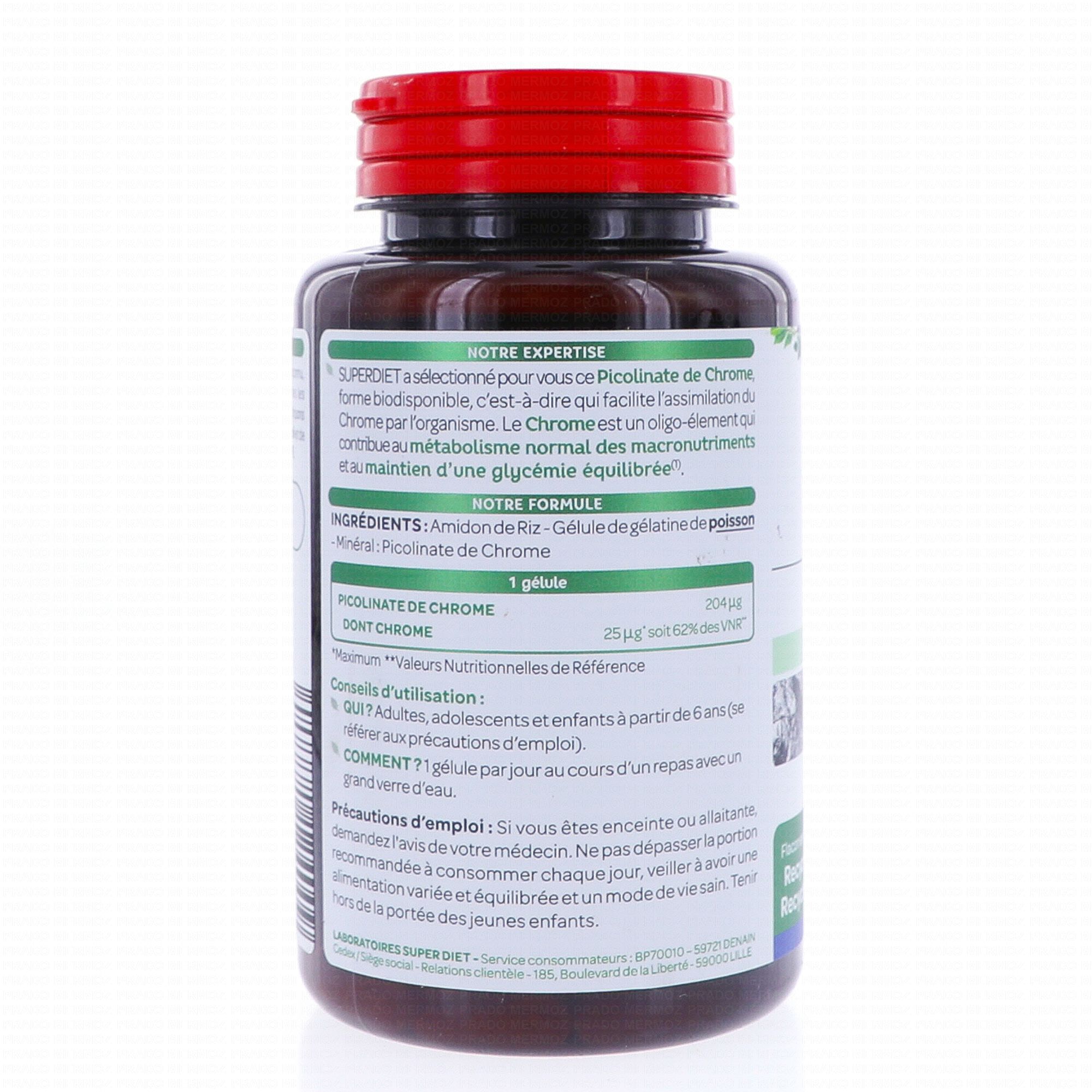 SUPERDIET Picolinate de Chrome 150 gélules contient les éléments suivants :