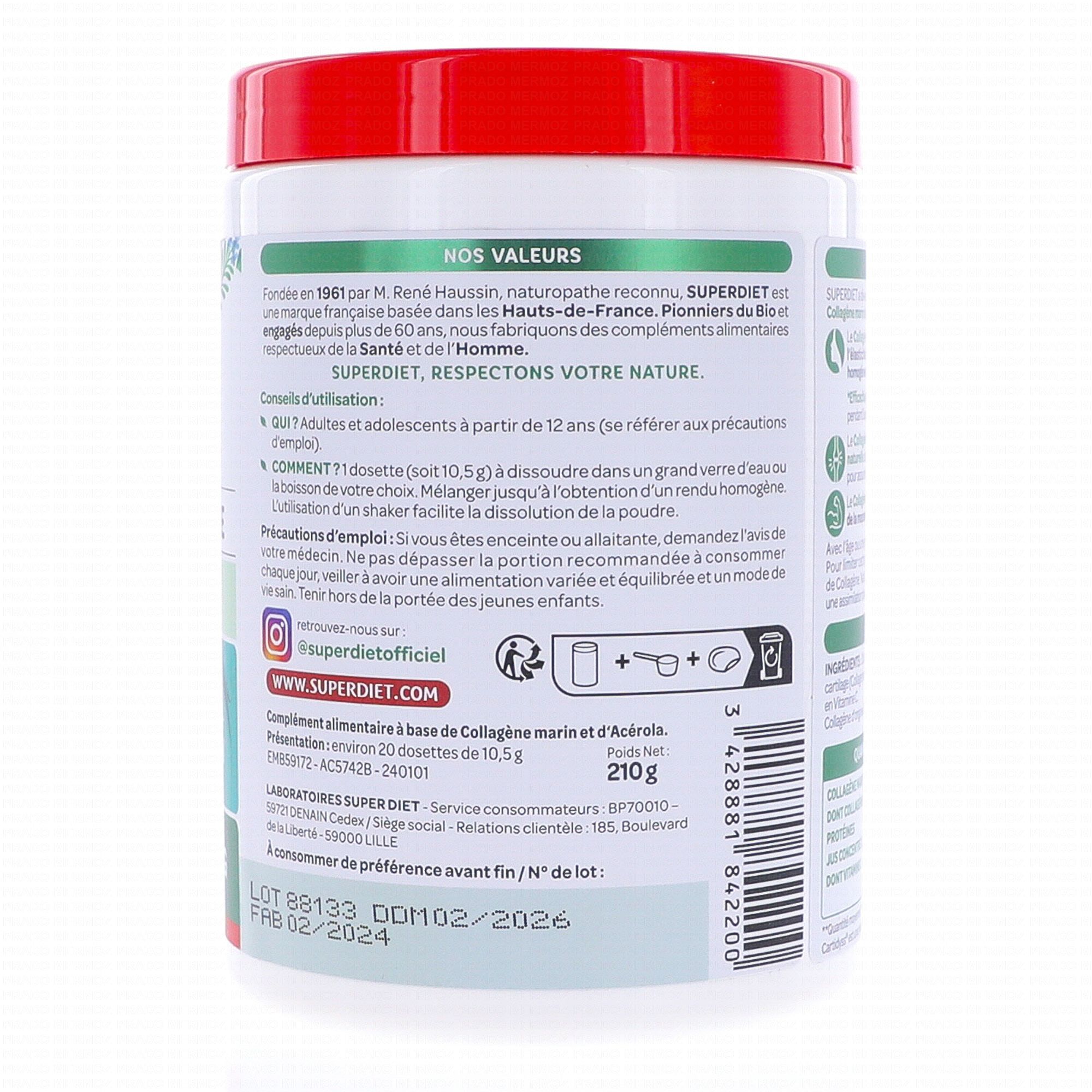 SUPERDIET Collagène Marin & Acérola poudre 210g contient les éléments suivants :