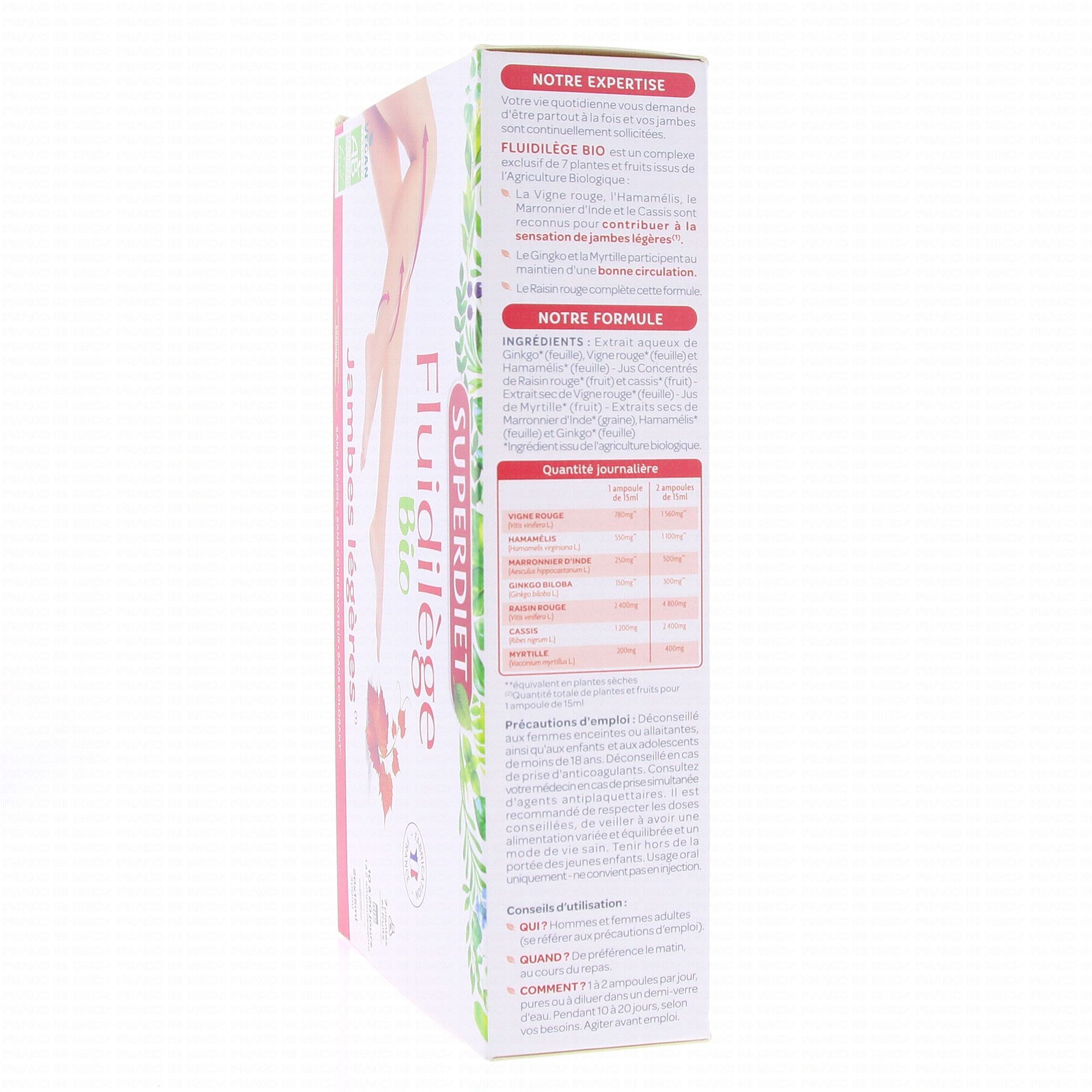 SUPER DIET Fluidilège circulation bio 20 ampoules contient les éléments suivants :