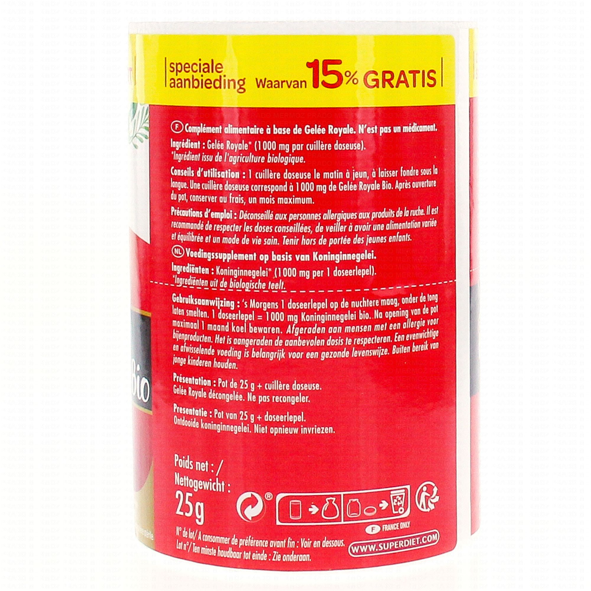 SUPER DIET Gelée royale bio pot 25g contient les éléments suivants :