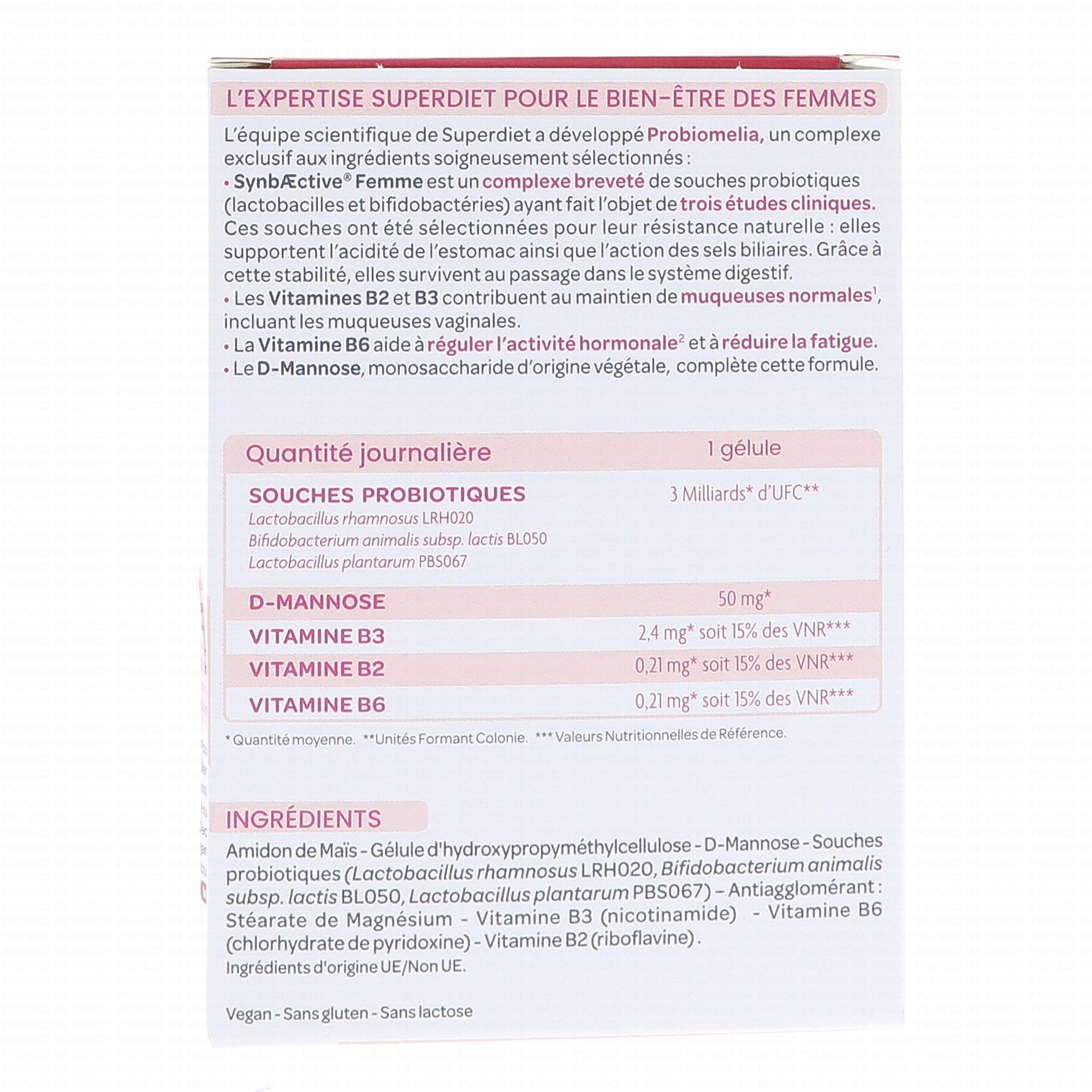 SUPERDIET Probiomelia Confort Intime 30 gélules contient les éléments suivants :