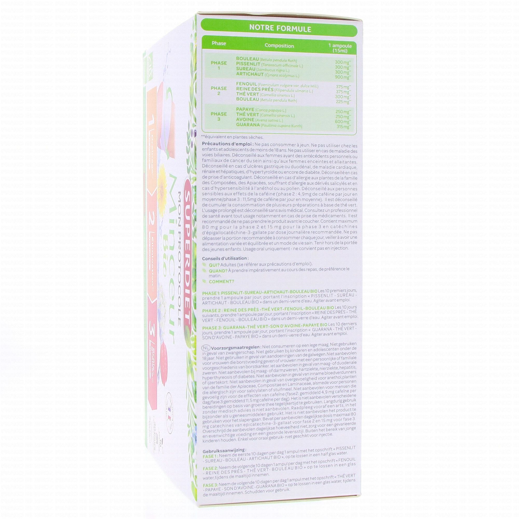 SUPER DIET Protocole minceur 30 ampoules de 15ml est un complément alimentaire qui s'utilise en 3 phases: