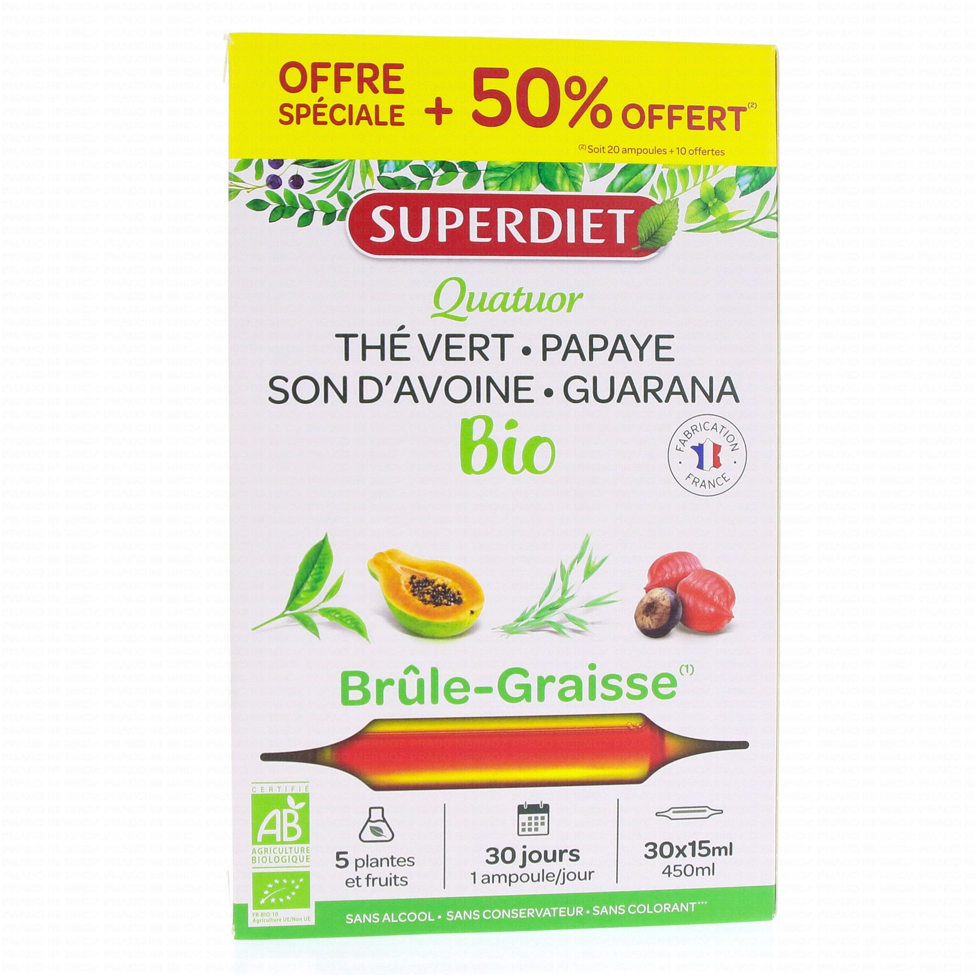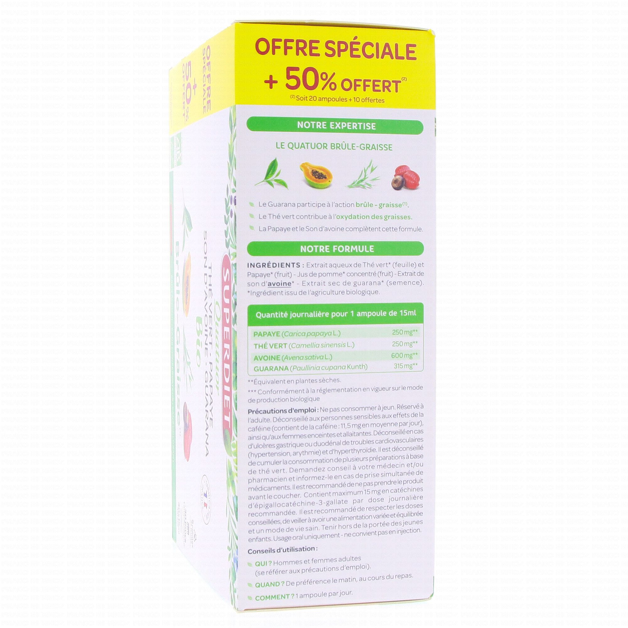 SUPERDIET Quatuor brule graisse bio 20 ampoules de 15ml boîte de 20 ampoules + 10