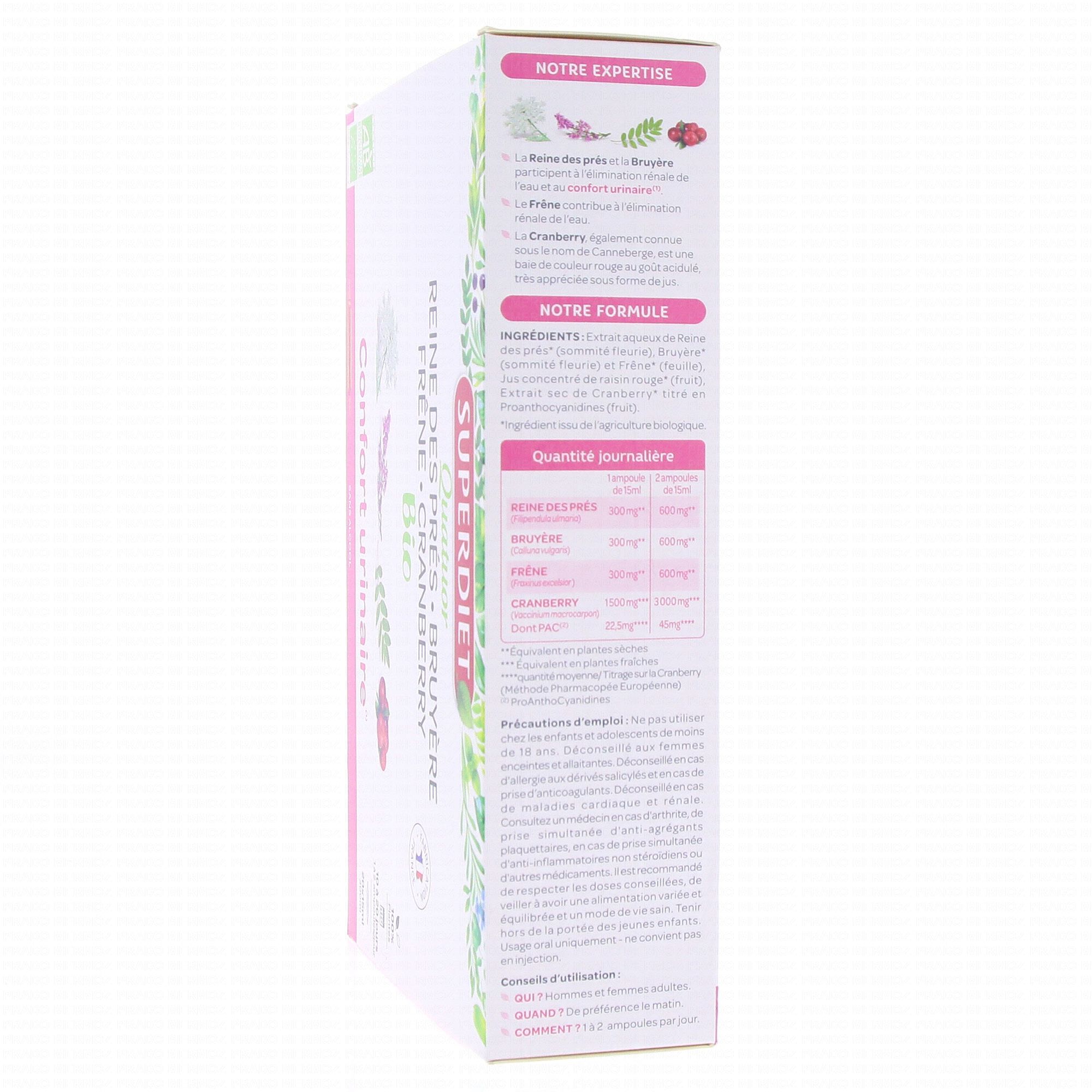 SUPER DIET Quatuor urinaire bio 20 ampoules contient les éléments suivants :