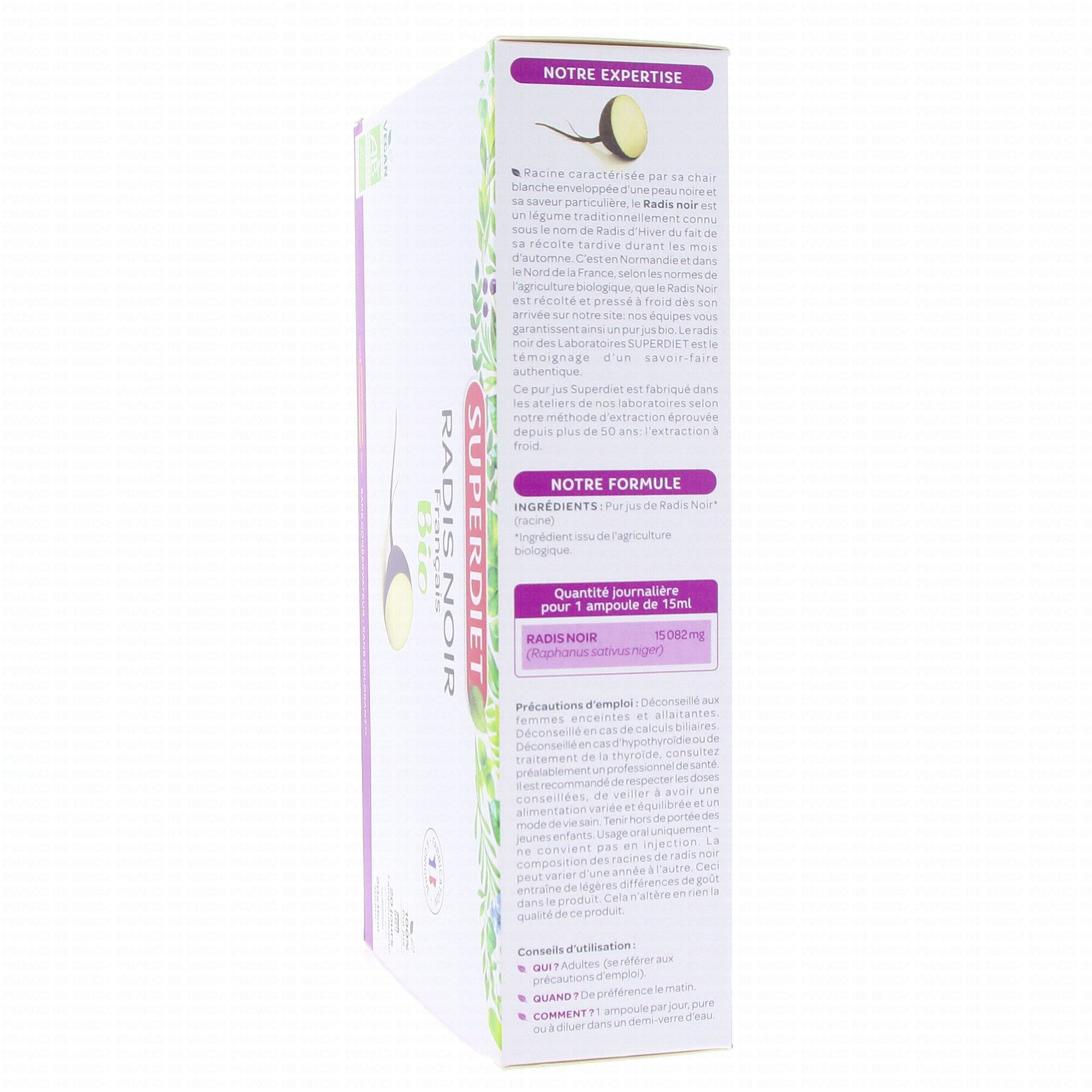 SUPER DIET Radis noir bio 20 ampoules contient les éléments suivants :