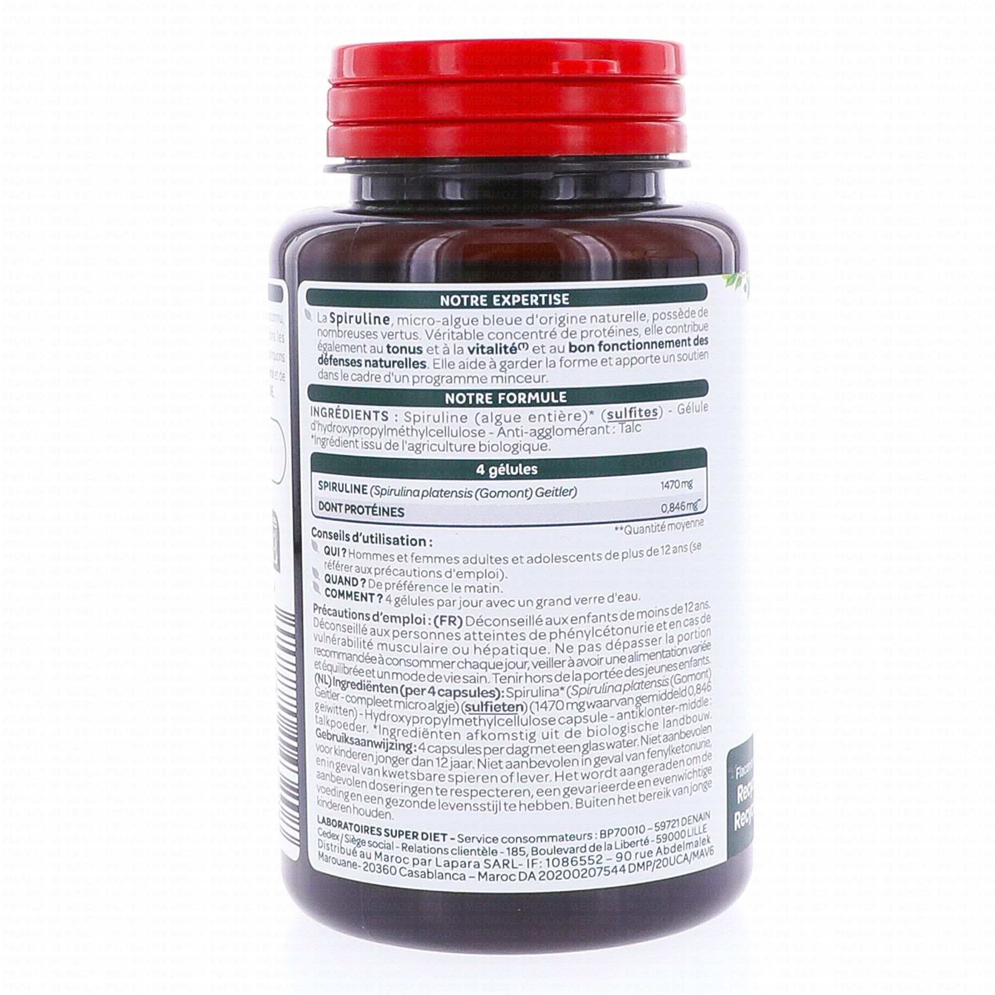 SUPERDIET Spiruline 120 gélules contient les éléments suivants :