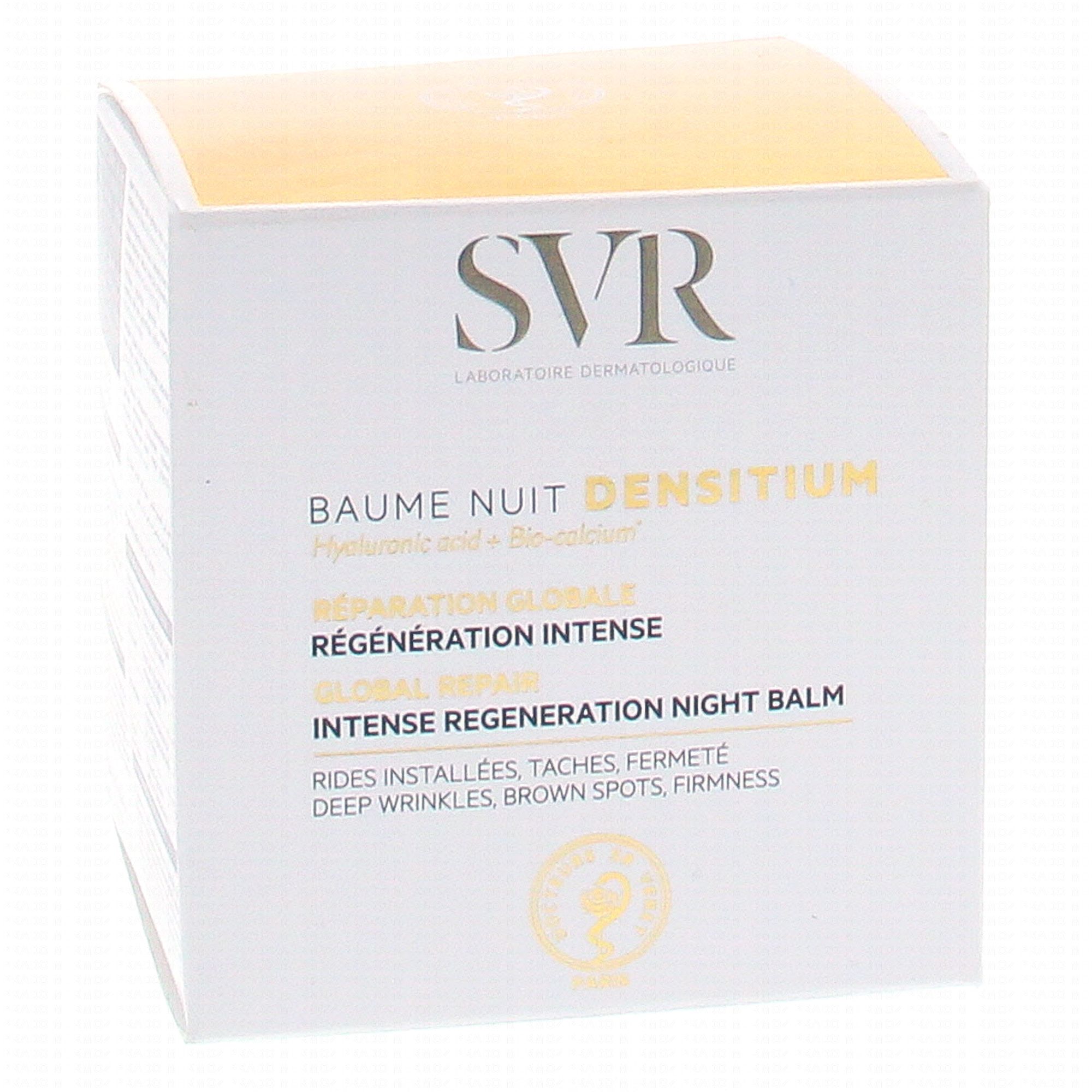 SVR Densitium Baume Nuit 50ml est un baume de nuit régénérant intensif pour les peaux matures. Il agit sur les rides profondes, l'hyperpigmentation et raffermit la peau, tout en stimulant le processus de renouvellement cutané pour une action anti-âge complète. Nuit après nuit, la peau se retend et le rides se comblent. La peau est lissée, fraîche et le teint est éclatant. Ce baume apaise et nourrit la peau, tout en lui procurant une sensation de confort, accompagnée d'un doux parfum.