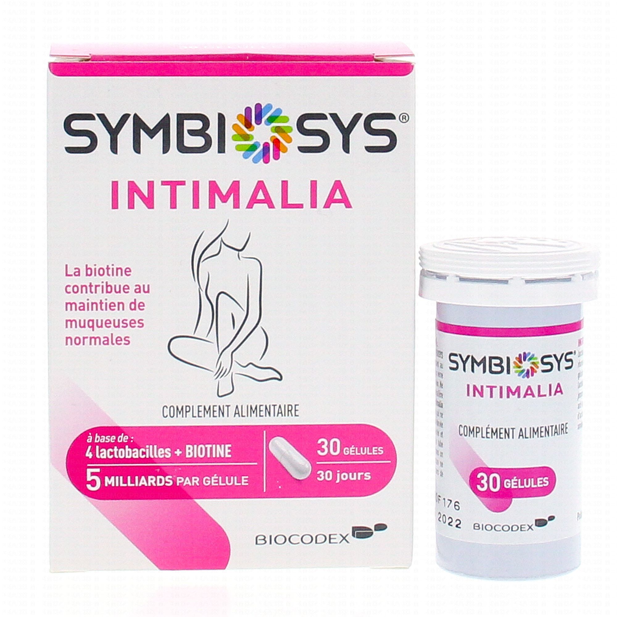 SYMBIOSYS Intimalia 30 gélules est un complément alimentaire qui contribue au maintien de la santé des muqueuses grâce à la présence de Biotine. Les souches Lactobacillus crispatus, Lactobacillus gasseri et Lactobacillus rhamnosus protègent la flore intestinale en limitant le développement des micro-organismes pathogènes.