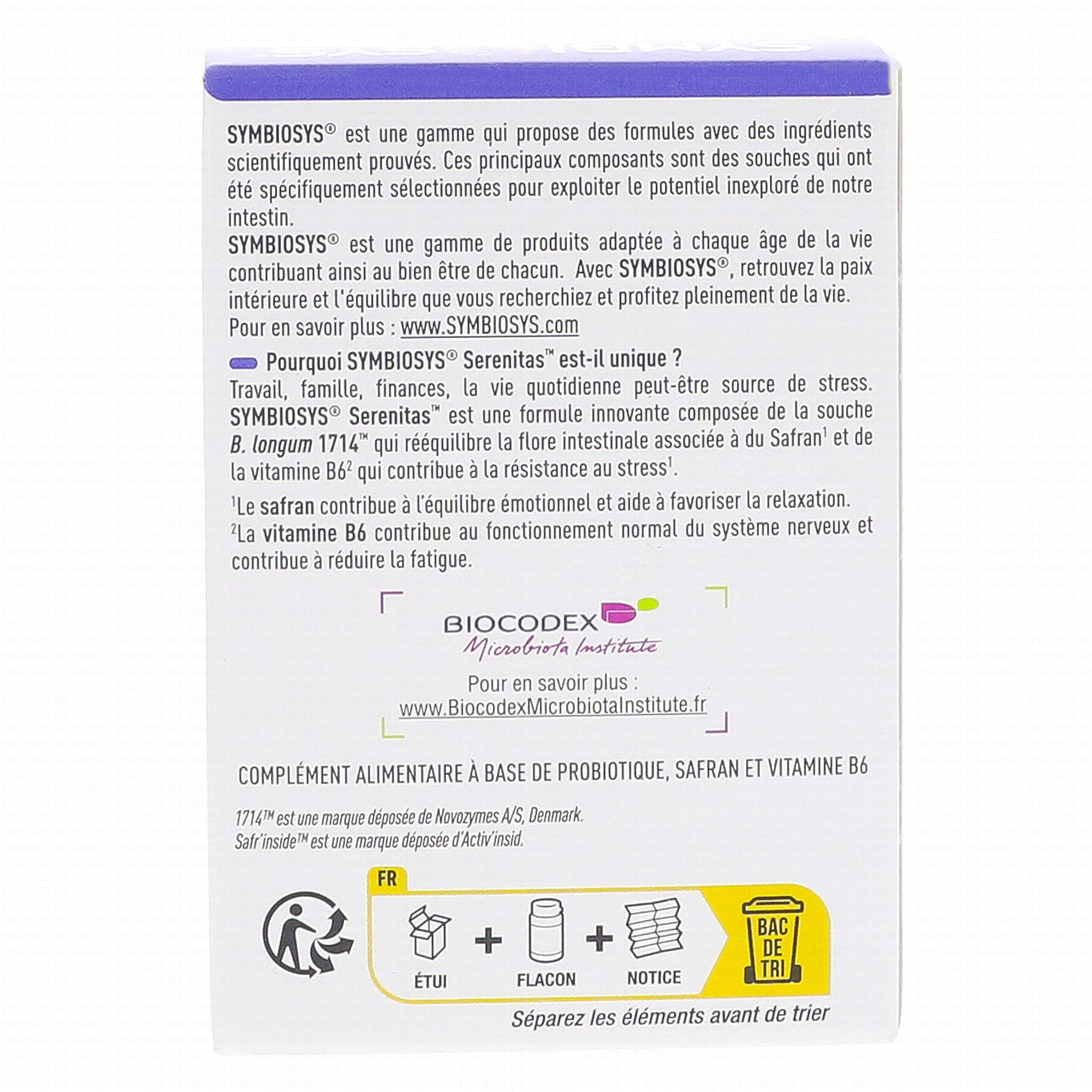 SYMBIOSYS Serenitas x30 gélules contient les éléments suivants :
