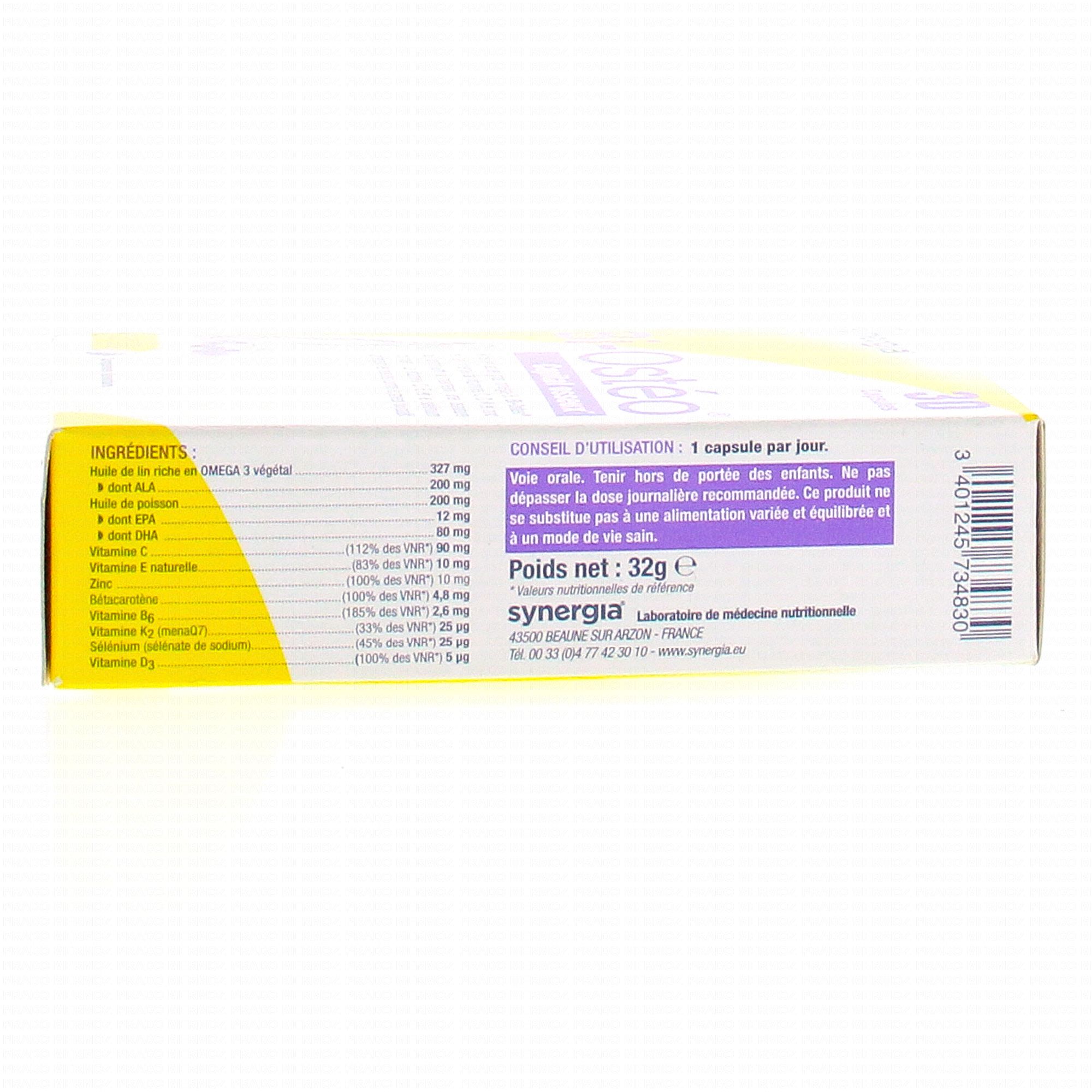SYNERGIA Bi-Ostéo 30 capsules est un complément alimentaire qui contribue à la formation normale de collagène pour assurer la fonction normale des os. La vitamine E, la vitamine D3 et la vitamine K sont nécessaire au bon fonctionnement des os.