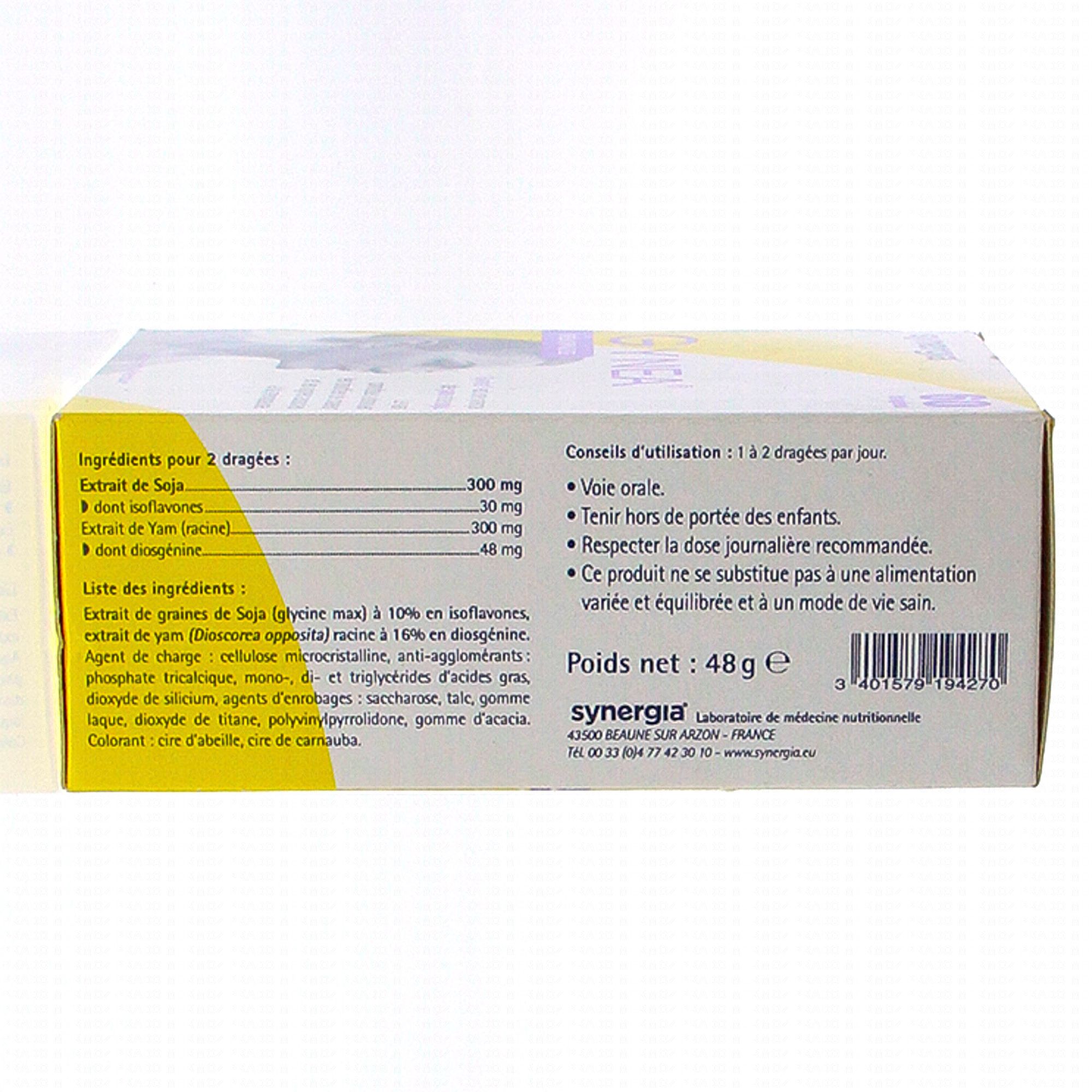 SYNERGIA Gynea Ménopause 60 dragées contient les éléments suivants :