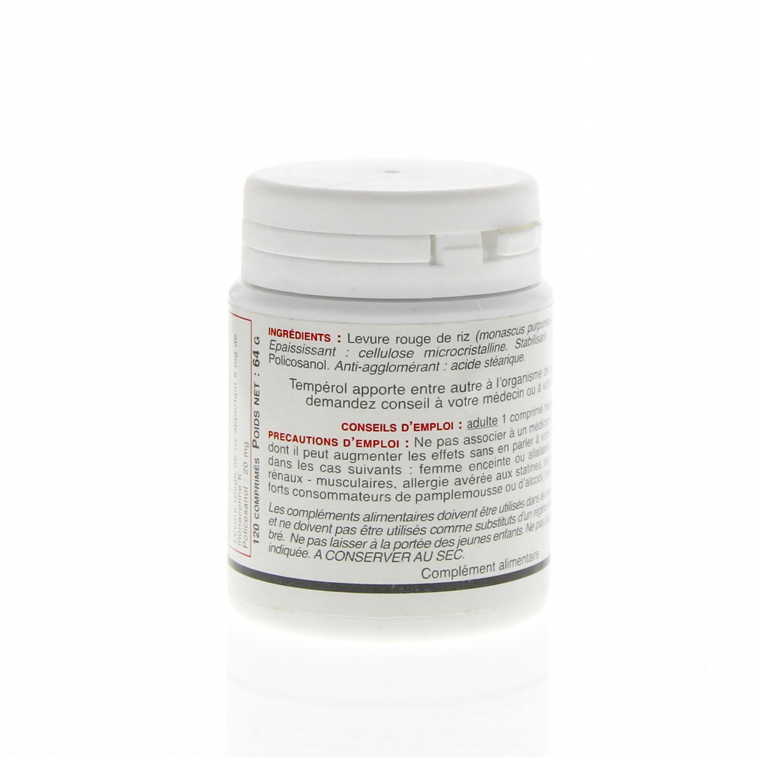 TEMPEROL 120 comprimés grâce à la monacolin k de levure de riz rouge contribue au maintien du taux de cholestérol dans le sang.