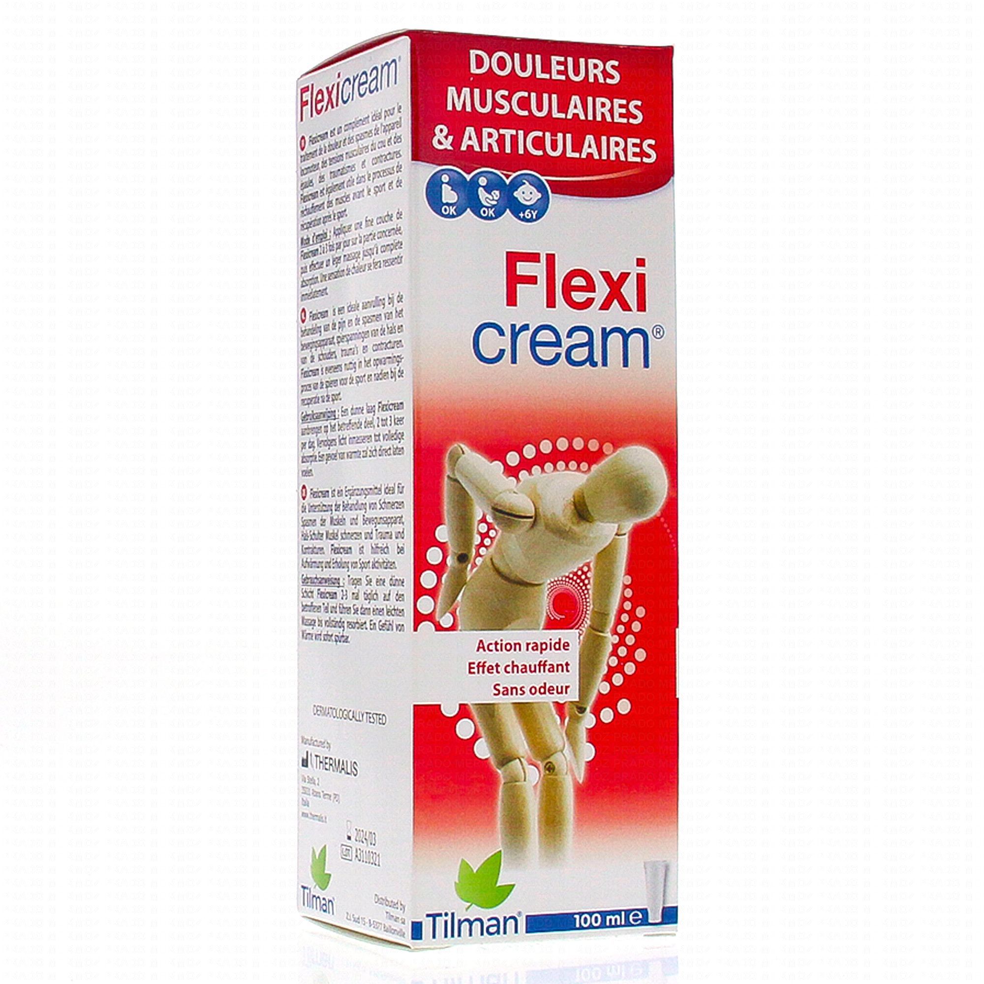 Flexicream soulage rapidement les douleurs musculaires et présente plusieurs avantages : elle ne sent pas, ne colle pas, ne dessèche pas la peau et n'est pas photosensibilisante ! Flexicream peut produire, selon la zone d'application, un effet chauffant, qui aide à réduire l'inflammation et la douleur.