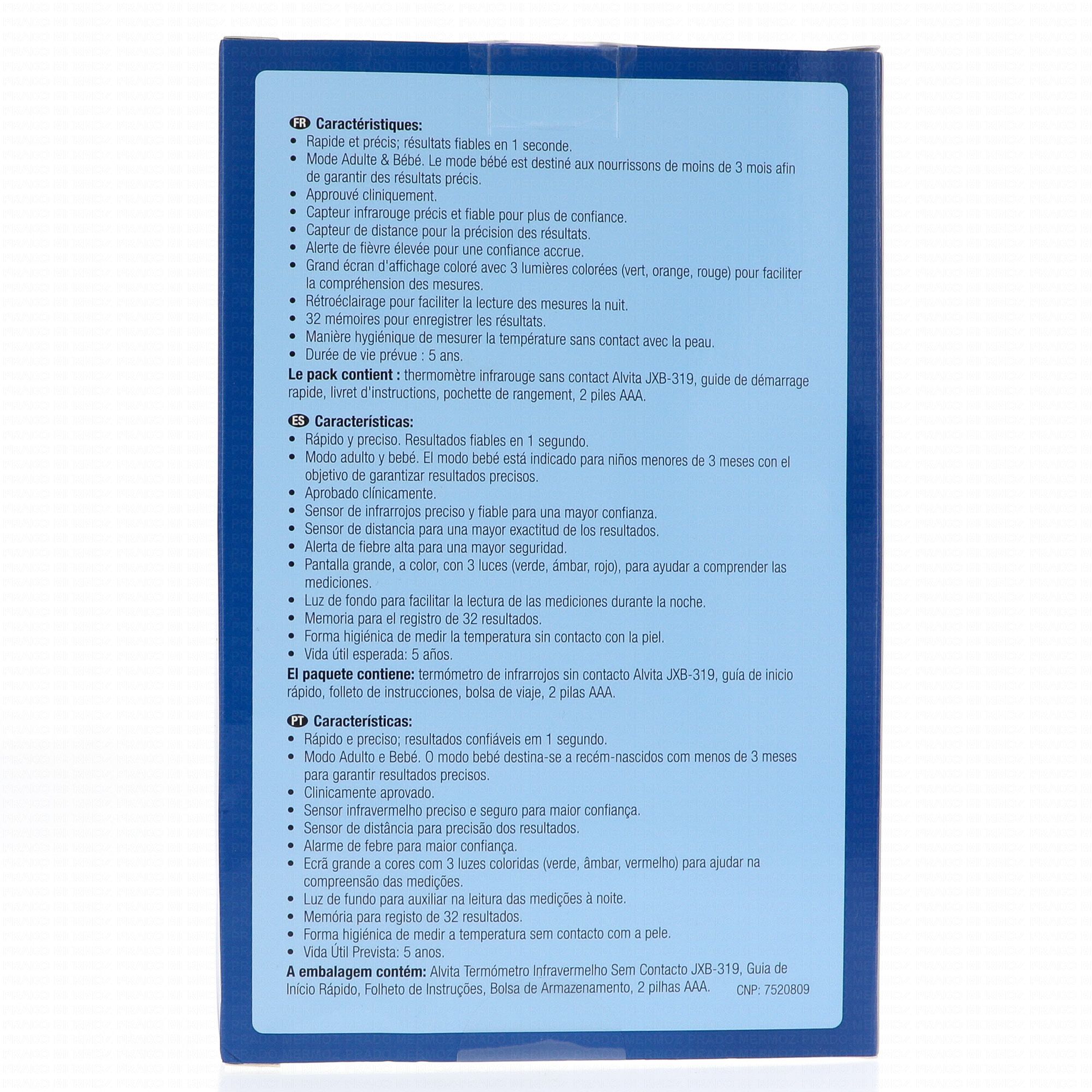 Thermomètre sans contact avec technologie infrarouge permettant la mesure de la température corporelle ou d'une surface. Le thermomètre mémorise jusqu'à 30 mesures.