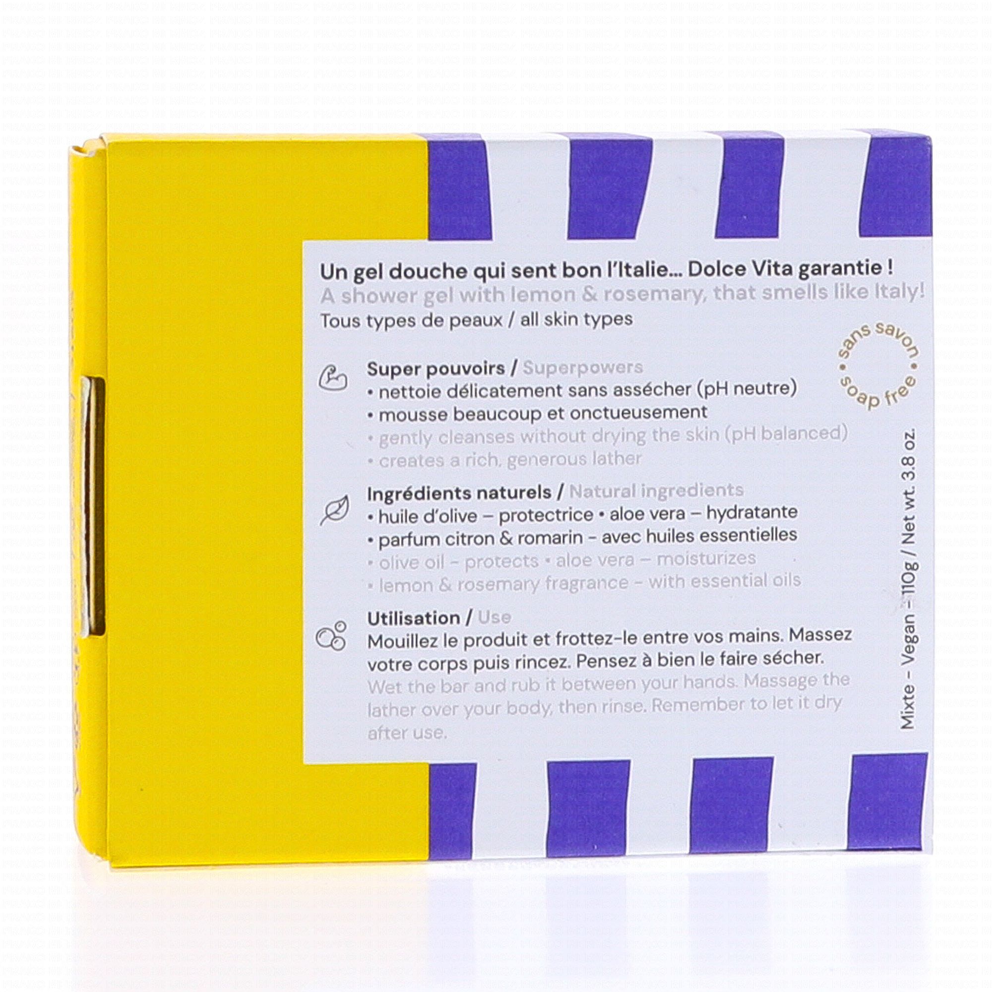 Un savon au pH neutre qui nettoie la peau aussi délicatement qu'un gel douche, sans l'assécher. Avec sa mousse pétillante et son parfum naturel ultra-frais Citron & Romarin, c'est toute l'Italie qui s'invite dans votre salle de bain.