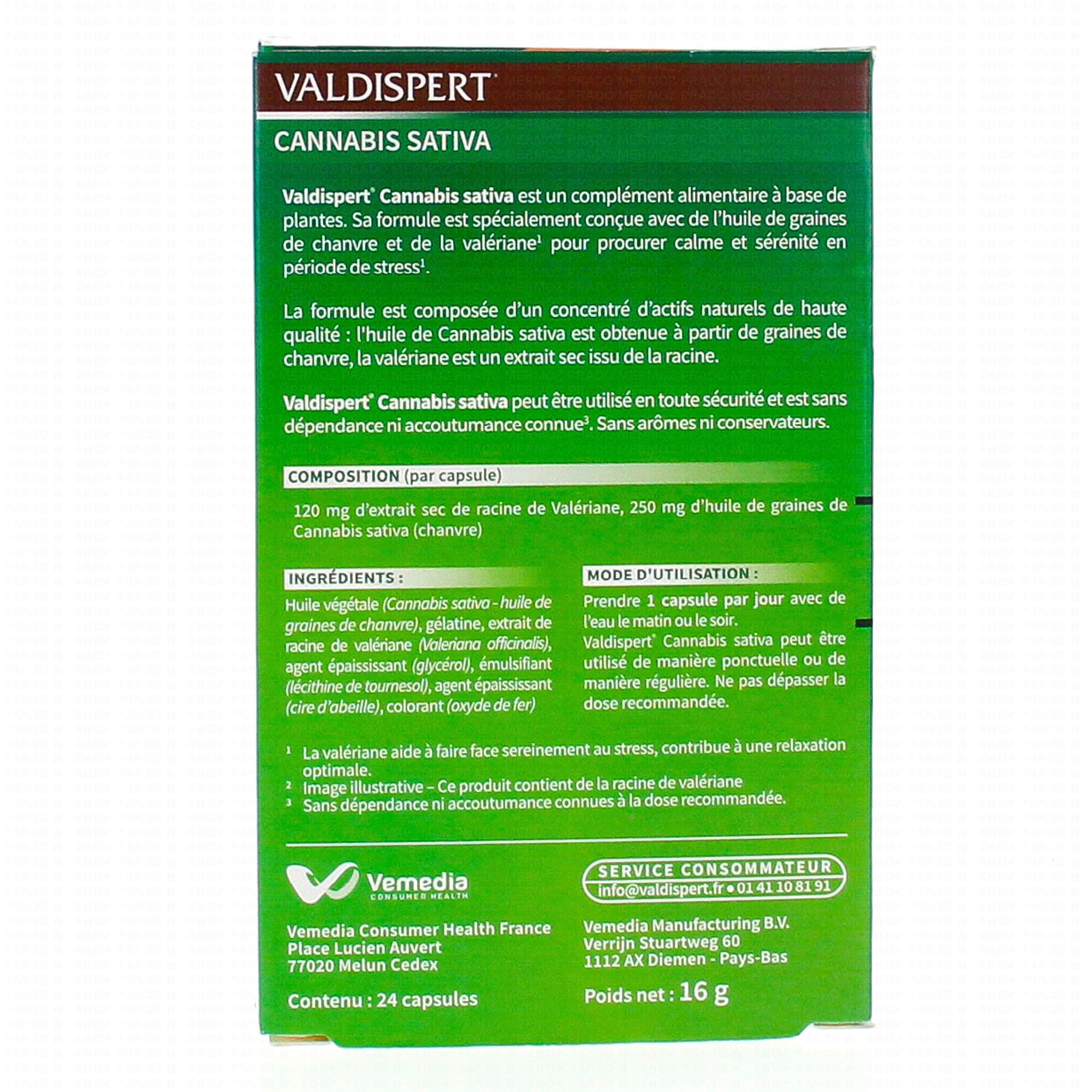 VALDISPERT Cannabis Sativa 24 capsules contient les éléments suivants :
