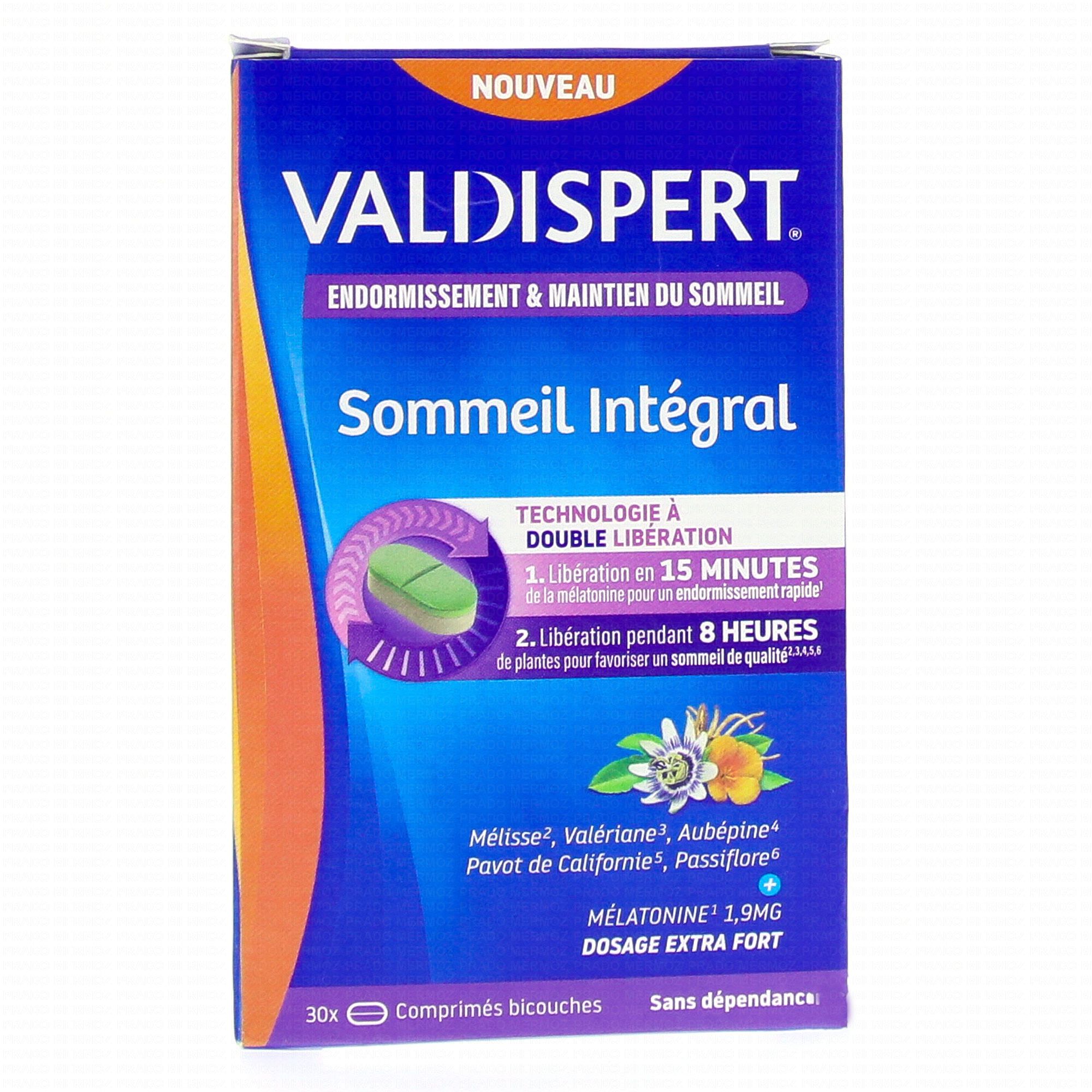 VALDISPERT Sommeil Intégral x30 comprimés est un complément alimentaire qui contribue à réduire le temps d'endormissement grâce à la présence de Mélatonine. L'Aubépine, la Mélisse et la Passiflore favorisent la relaxation et aident à induire un sommeil de qualité.