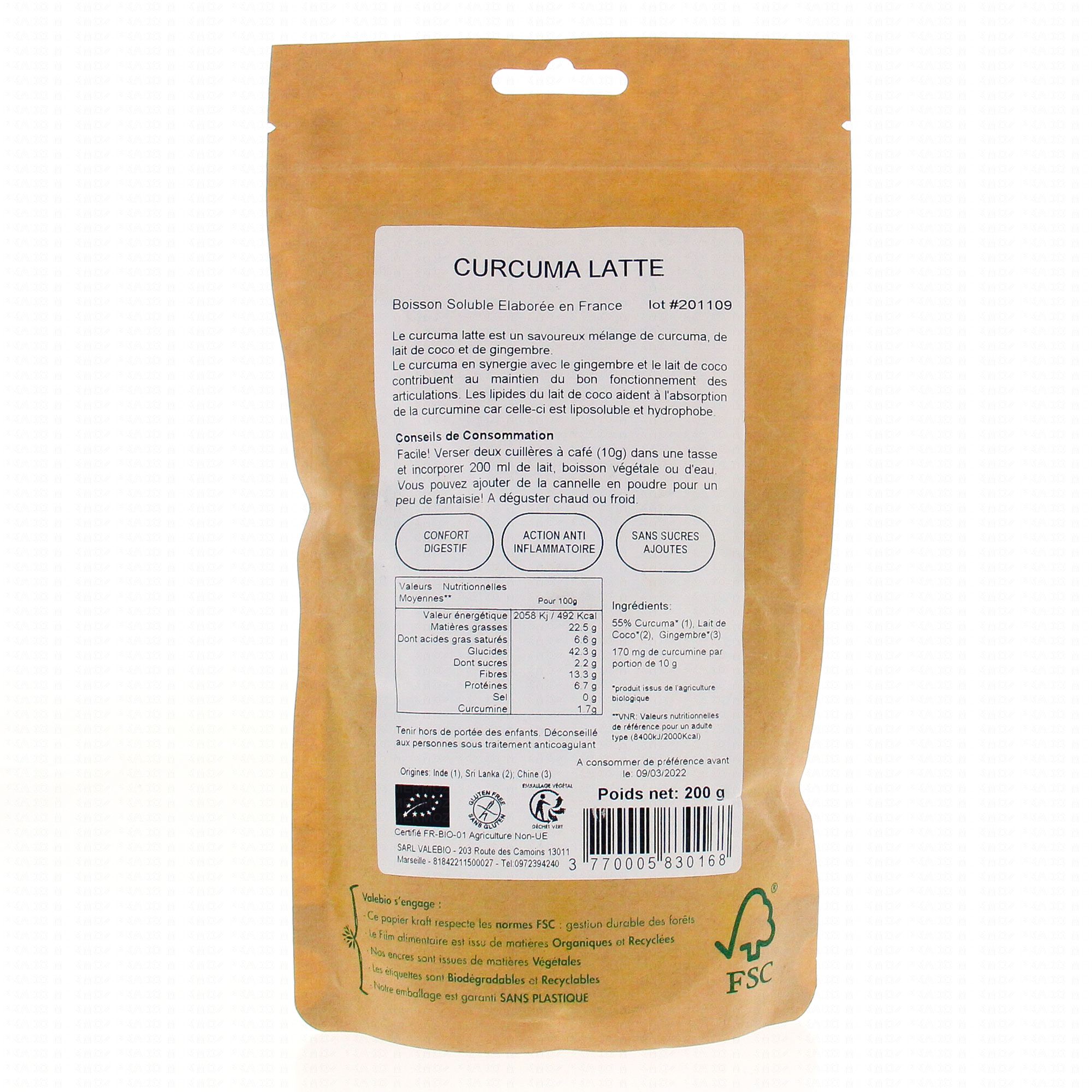 VALEBIO Curcuma Latte en poudre 200g contient les éléments suivants :
