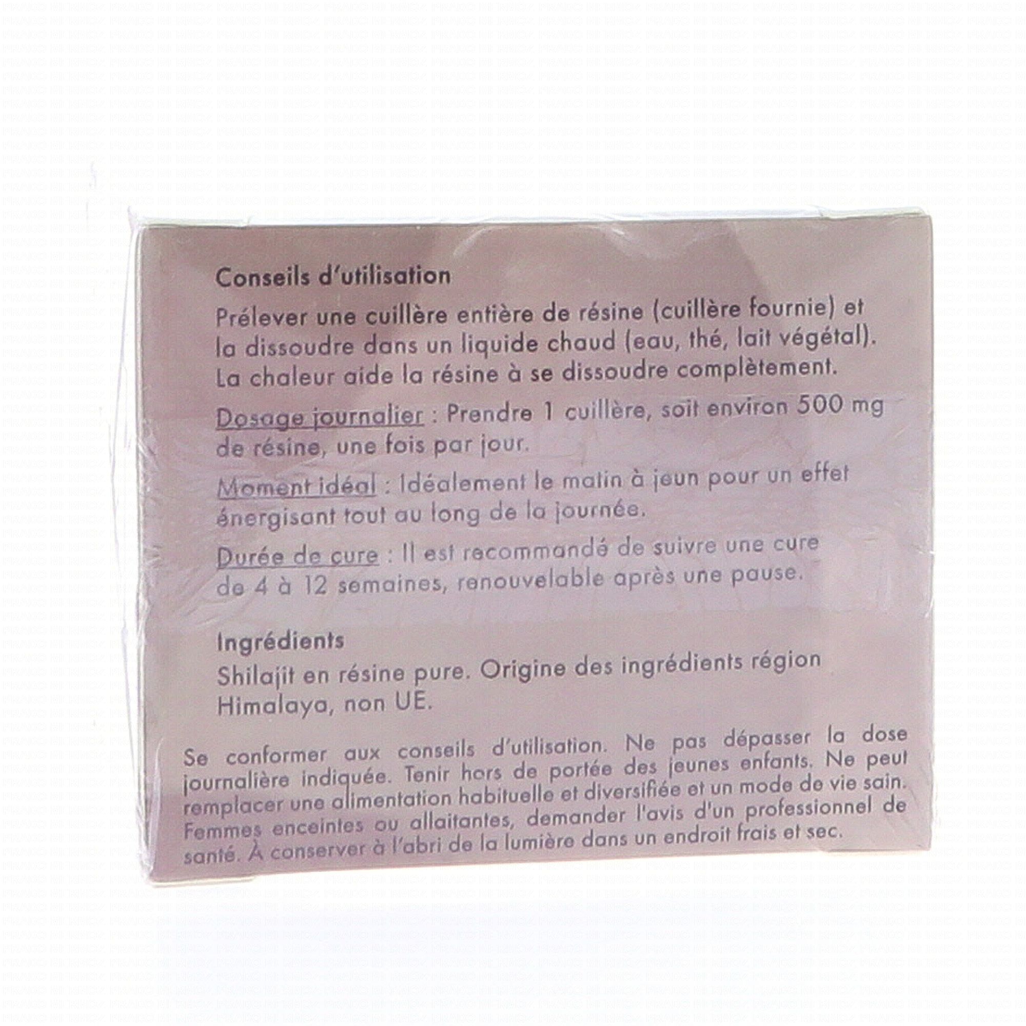 Nous recommandons une cure de Shilajit d'une durée de 100 jours, à raison de 500 mg par jour, soit 1 cuillère doseuse par jour (cuillère fournie). La résine peut être consommée, idéalement le matin à jeun, de deux façons différentes :