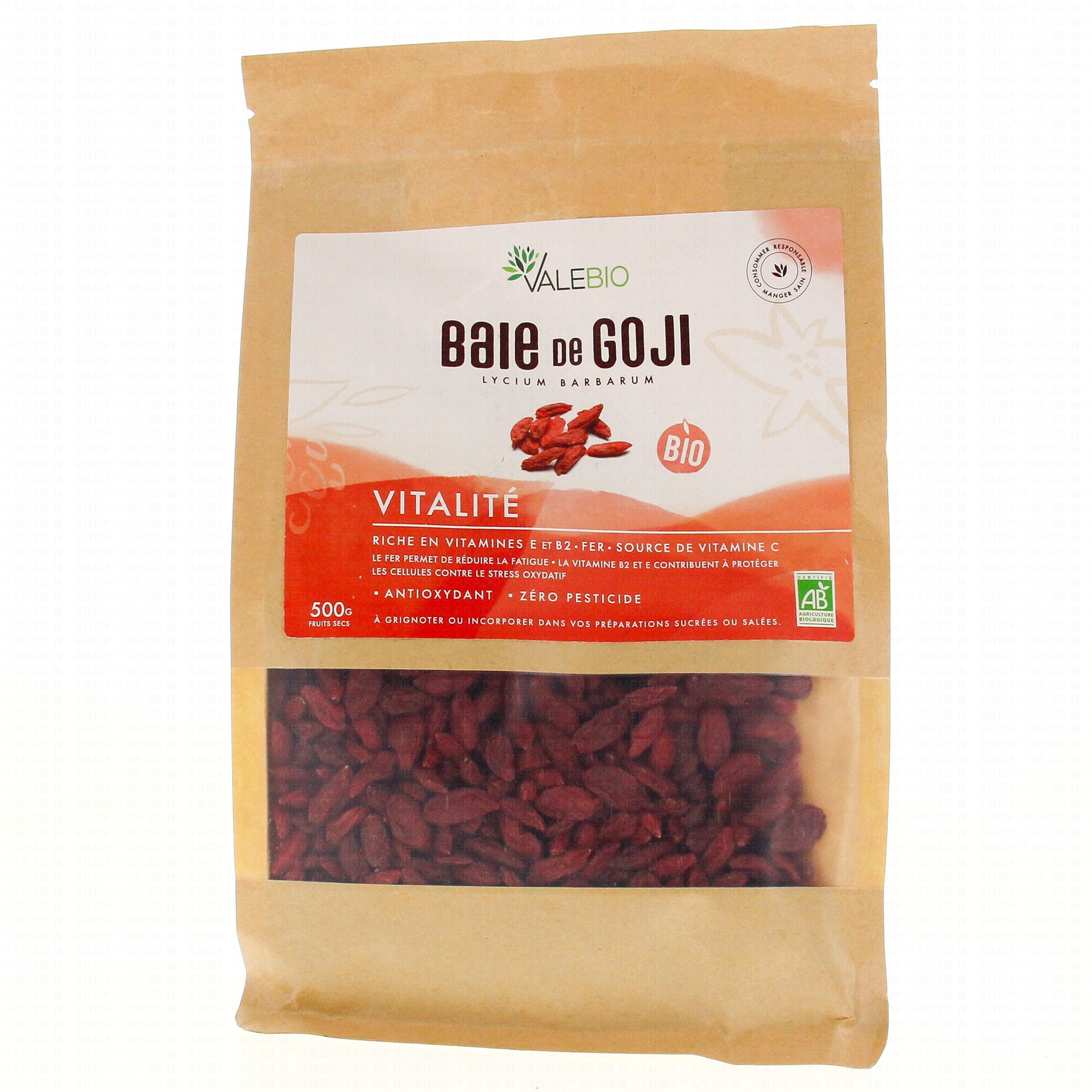 VALEBIO Super fruits baie de goji séchées est un complément alimentaire qui contribue à la protection des cellules contre l'oxydation grâce aux baies de Goji.