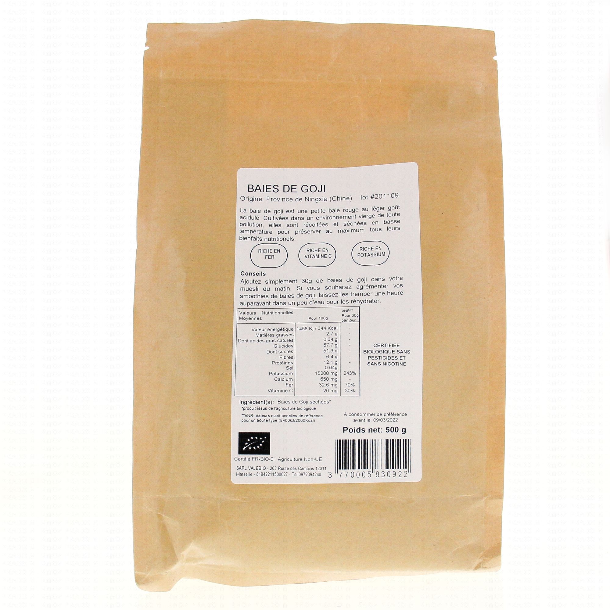VALEBIO Super fruits baie de goji sachet contient les éléments suivants :