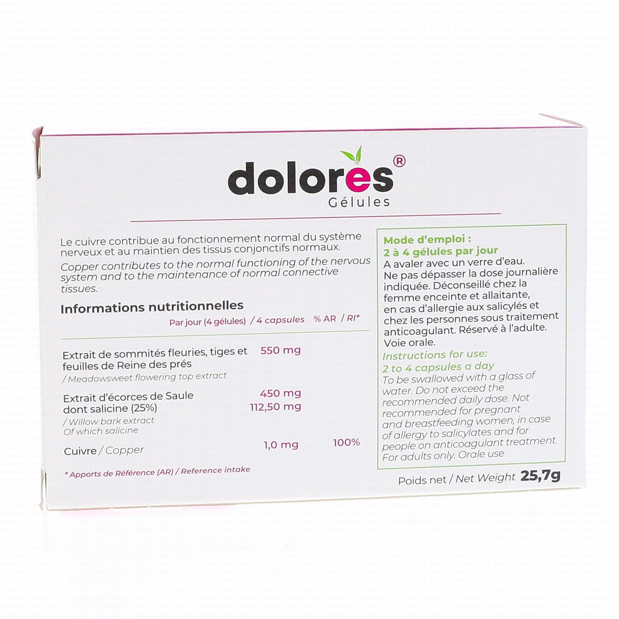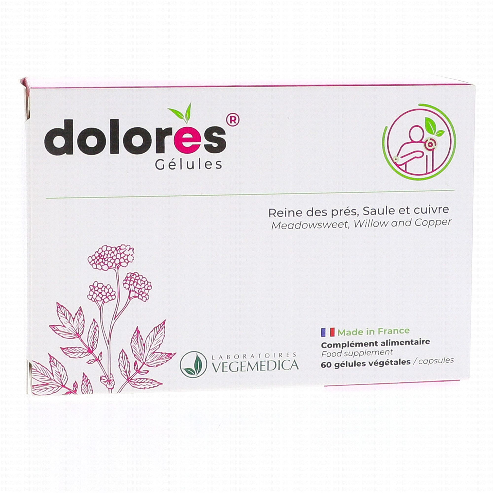 VEGEMEDICA Dolores articulations reine des pres x60 gélules est un complément alimentaire qui contribue à la bonne santé des muscles et des articulations grâce à la présence de Saule. Le Cuivre aide au maintien de tissus conjonctifs normaux.