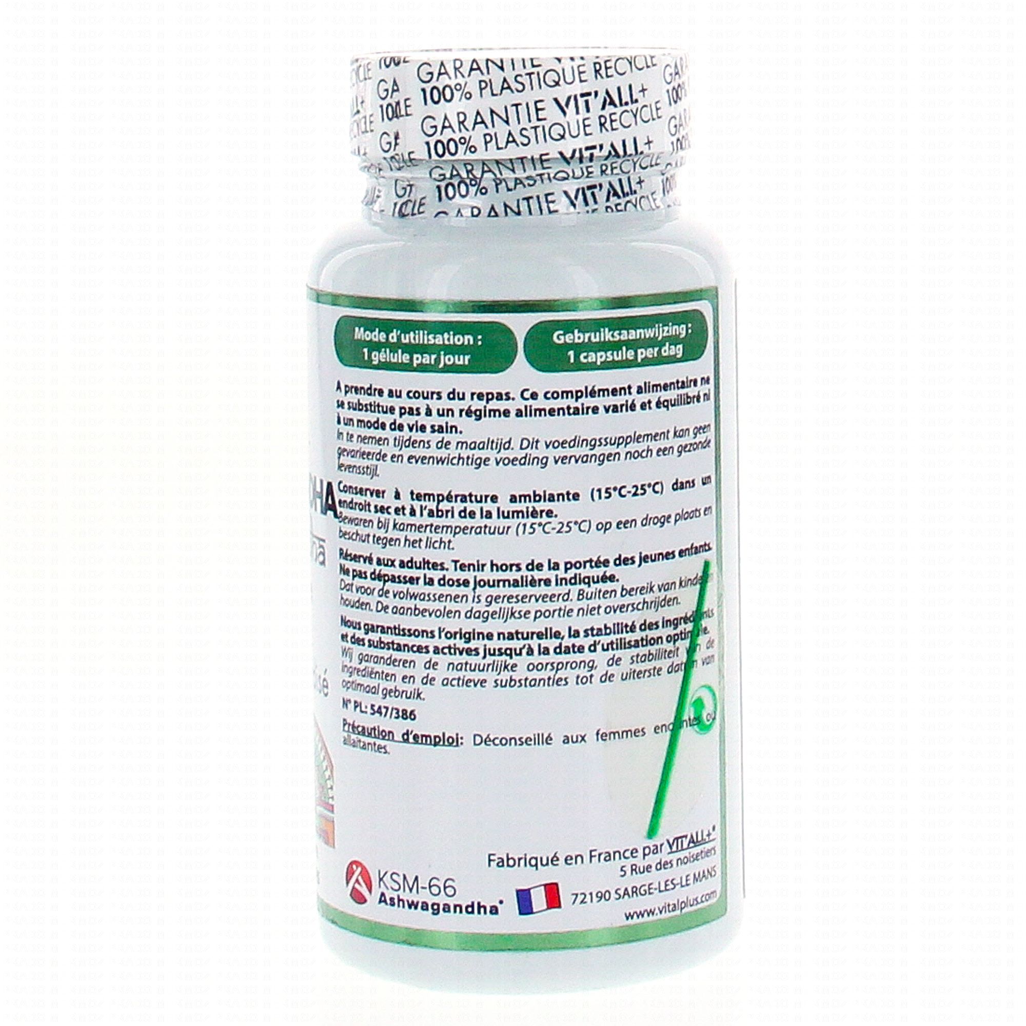 VIT'ALL+ Ashwagandha biologique 600mg 60 gélules contient les éléments suivants :