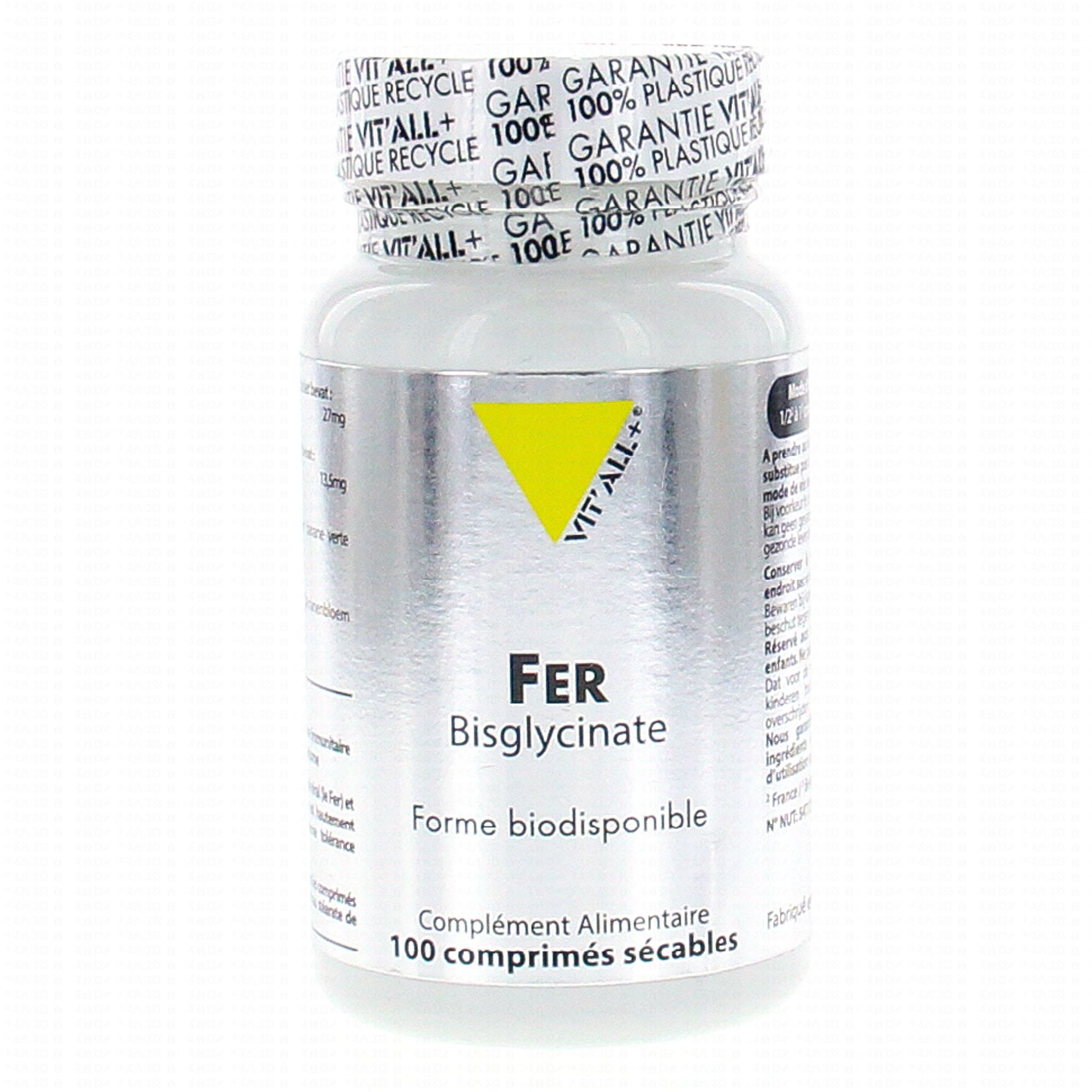 VIT'ALL+ Fer Bisglycinate 100 comprimés sécables contient les éléments suivants :