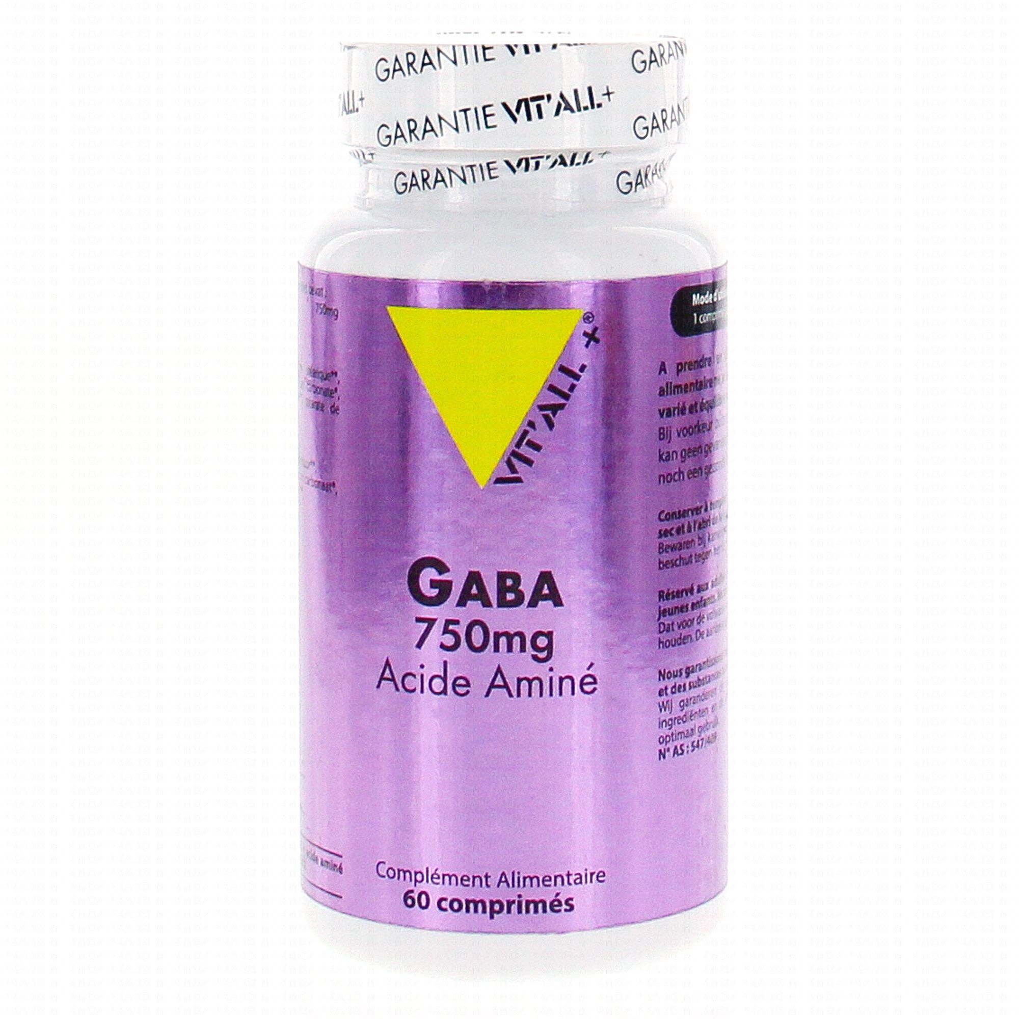 VIT'ALL+ Gaba 750mg 60 comprimés contient les éléments suivants :