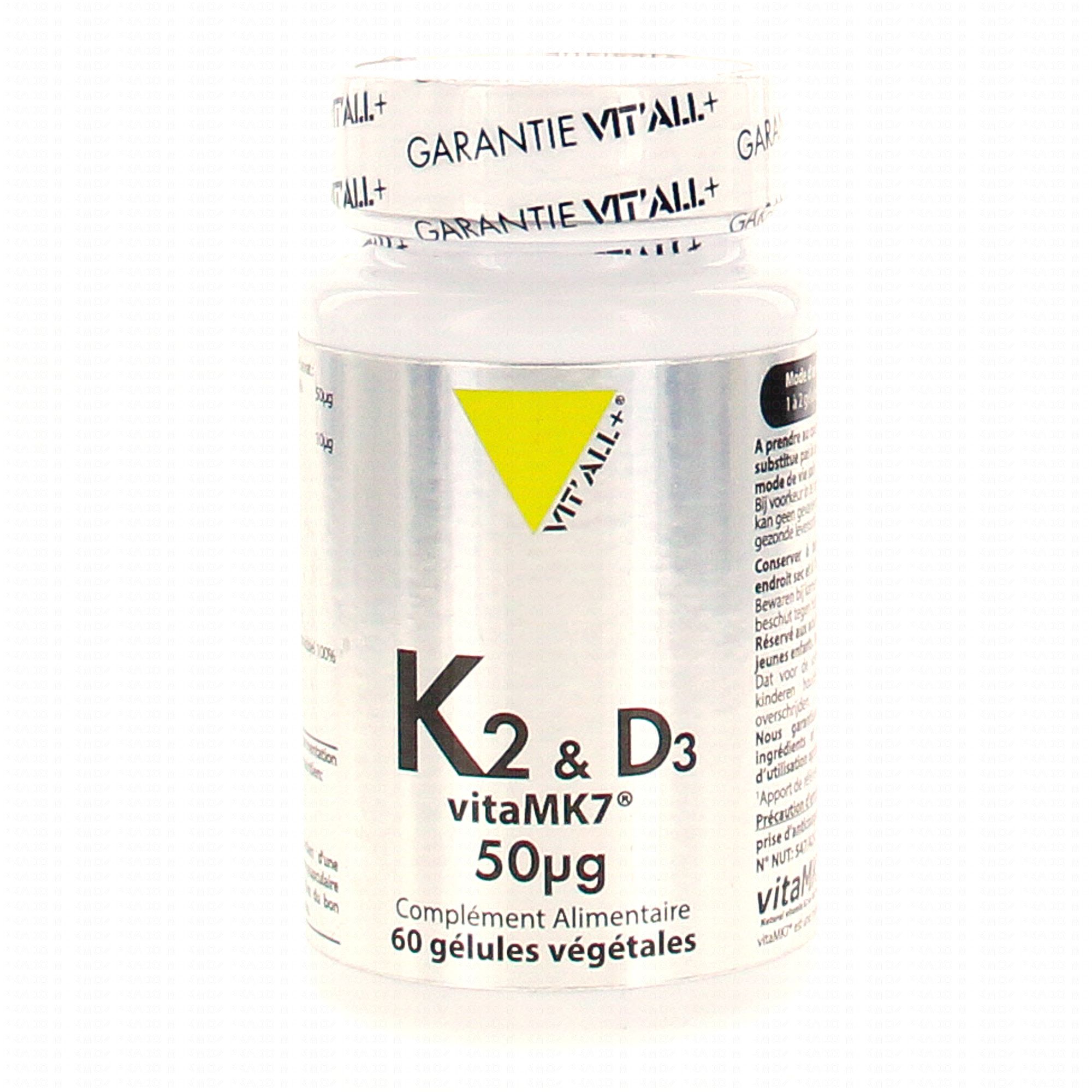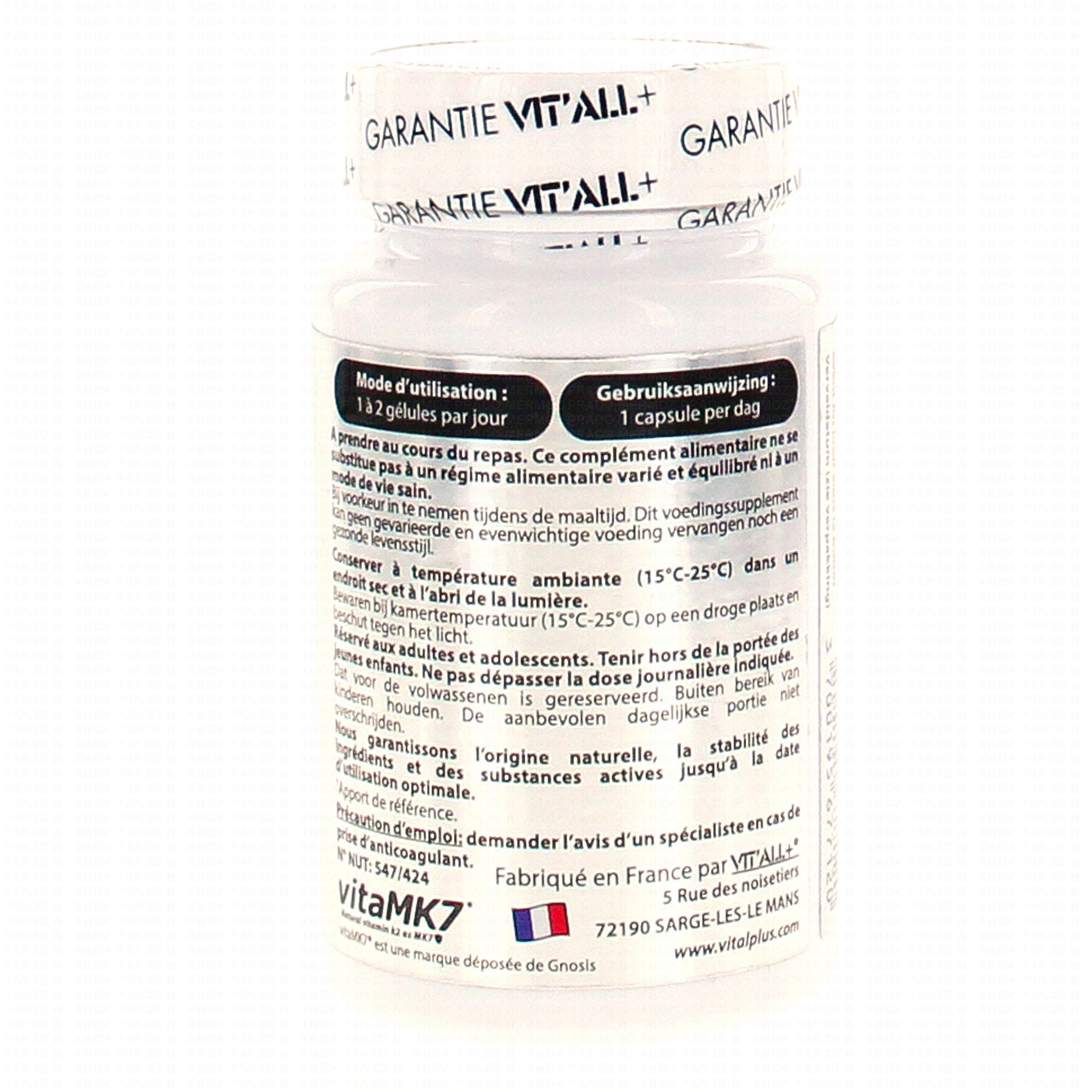 VIT'ALL+ K2 & D3 vitaMK7 50µg 60 gélules contient les éléments suivants :