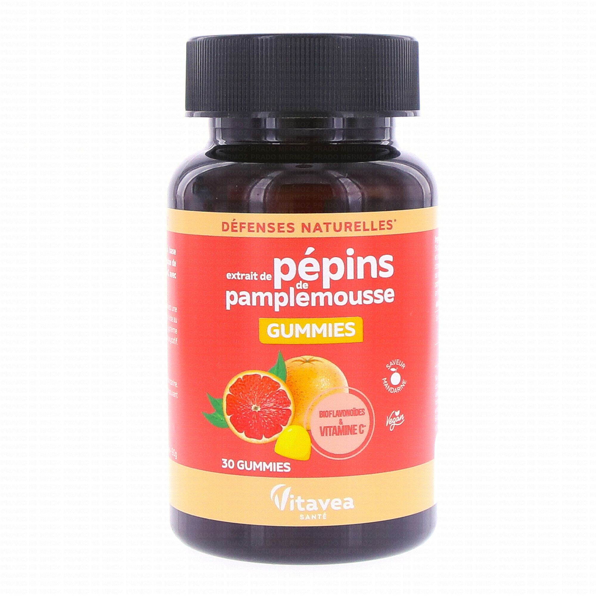 VITAVEA Extrait de Pépins de Pamplemousse 30 Gummies est un complément alimentaire qui contribue à renforcer le système immunitaire grâce à la présence de Pépins de pamplemousse et de vitamine C.