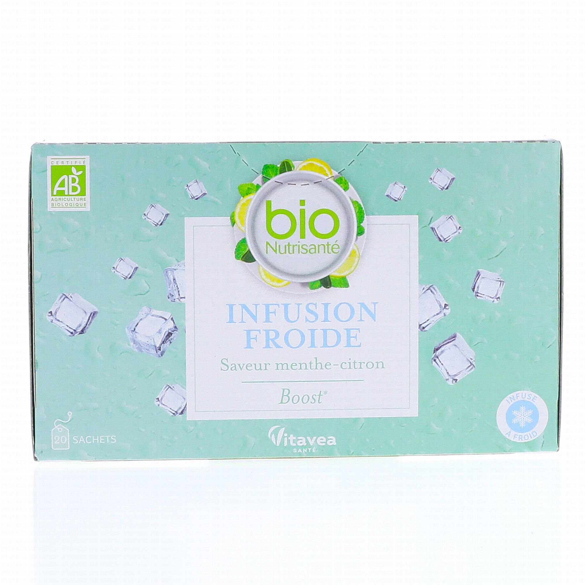 VITAVEA Infusion Froide Bio Saveur Menthe Citron Boost x20 sachets