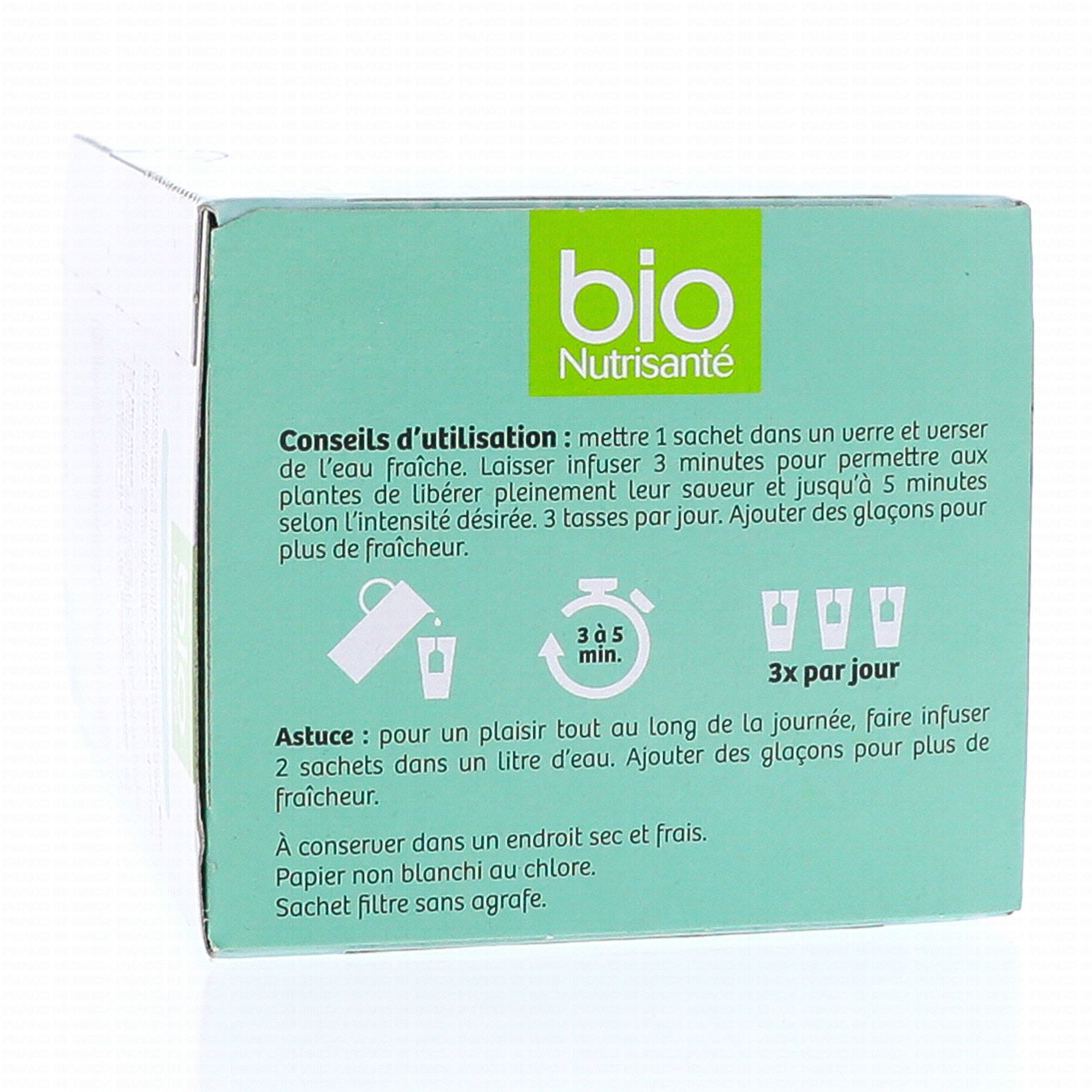 VITAVEA Infusion Froide Bio Saveur Menthe Citron Boost x20 sachets contient les éléments suivants :