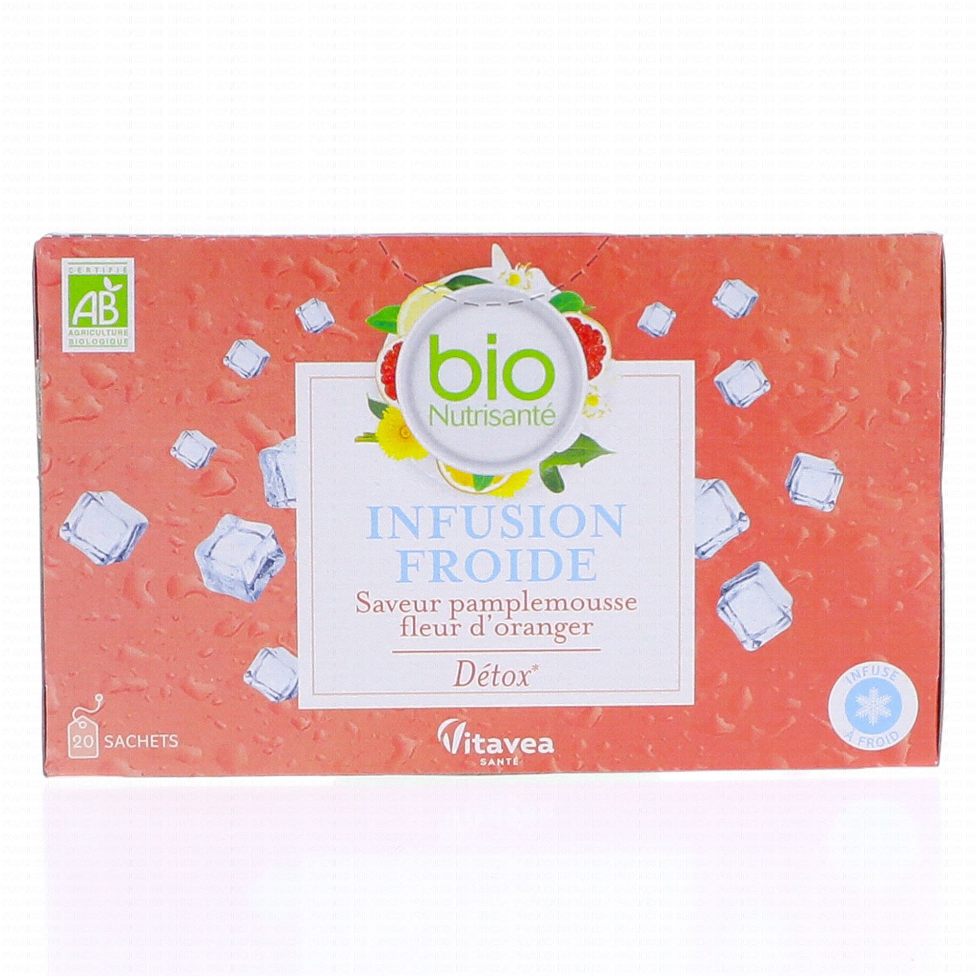VITAVEA Infusion Froide Bio Saveur Pamplemousse Fleur d'oranger Détox x20 sachets contient les éléments suivants :