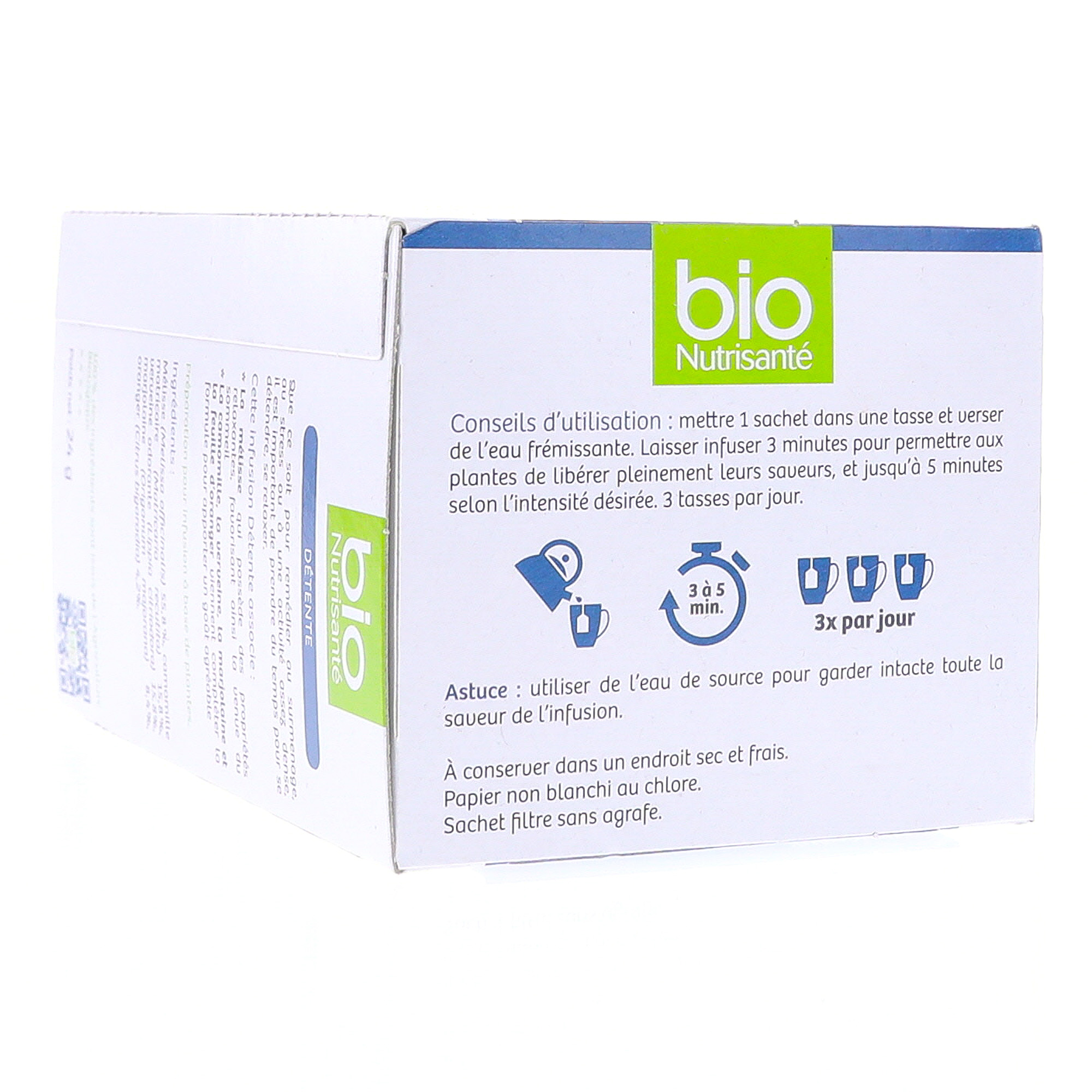 VITAVEA Infusion bio Détente Mélisse 20 sachets est une préparation qui joue un rôle dans le bien être physique et mental grâce à la présence de Camomille. La Mélisse, la Matricaire et la Verveine jouent un rôle dans la relaxation.
