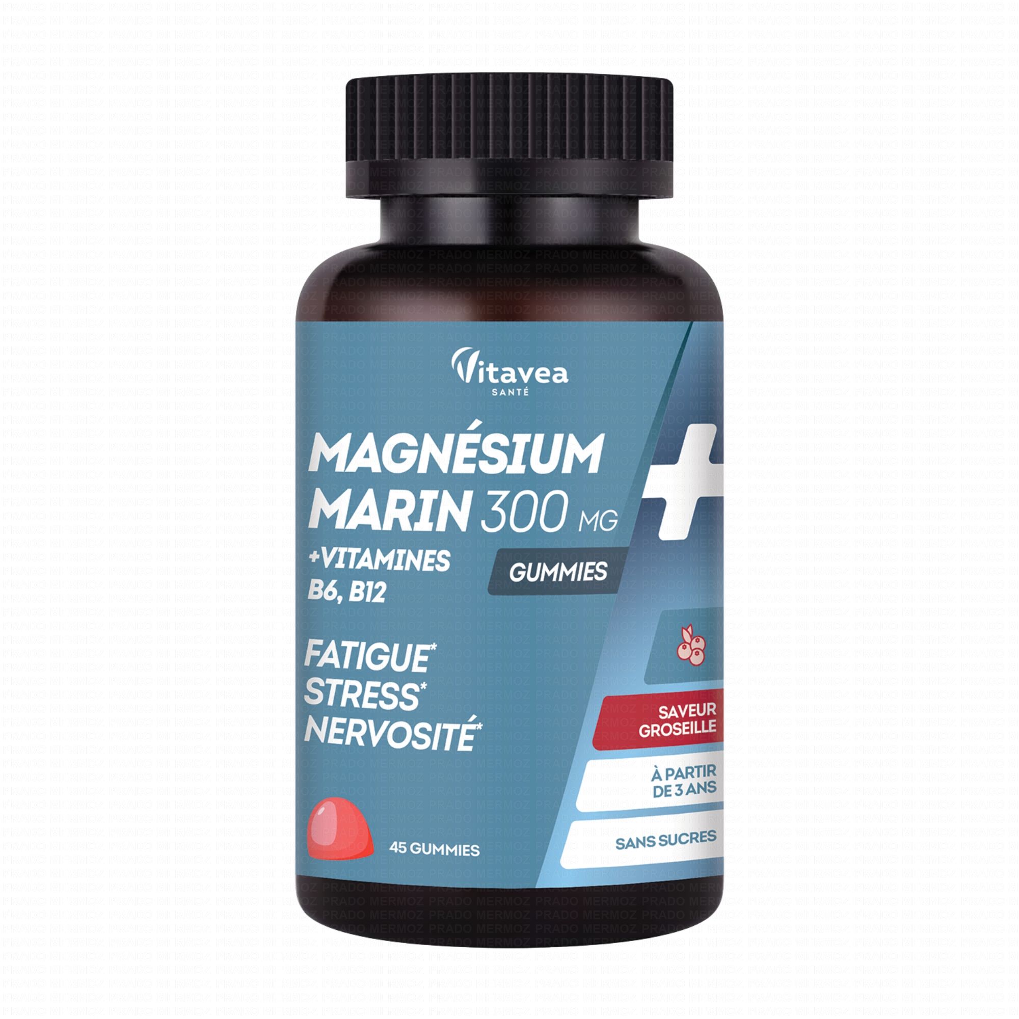 VITAVEA Magnésium Vitamines B6 et B12 x45 Gummies est un complément alimentaire qui contribue à réduire la fatigue grâce à la présence de Magnésium et de Vitamine B6 et B12. Le Magnésium favorise le fonctionnement normal du système nerveux et un bon fonctionnement du système musculaire.