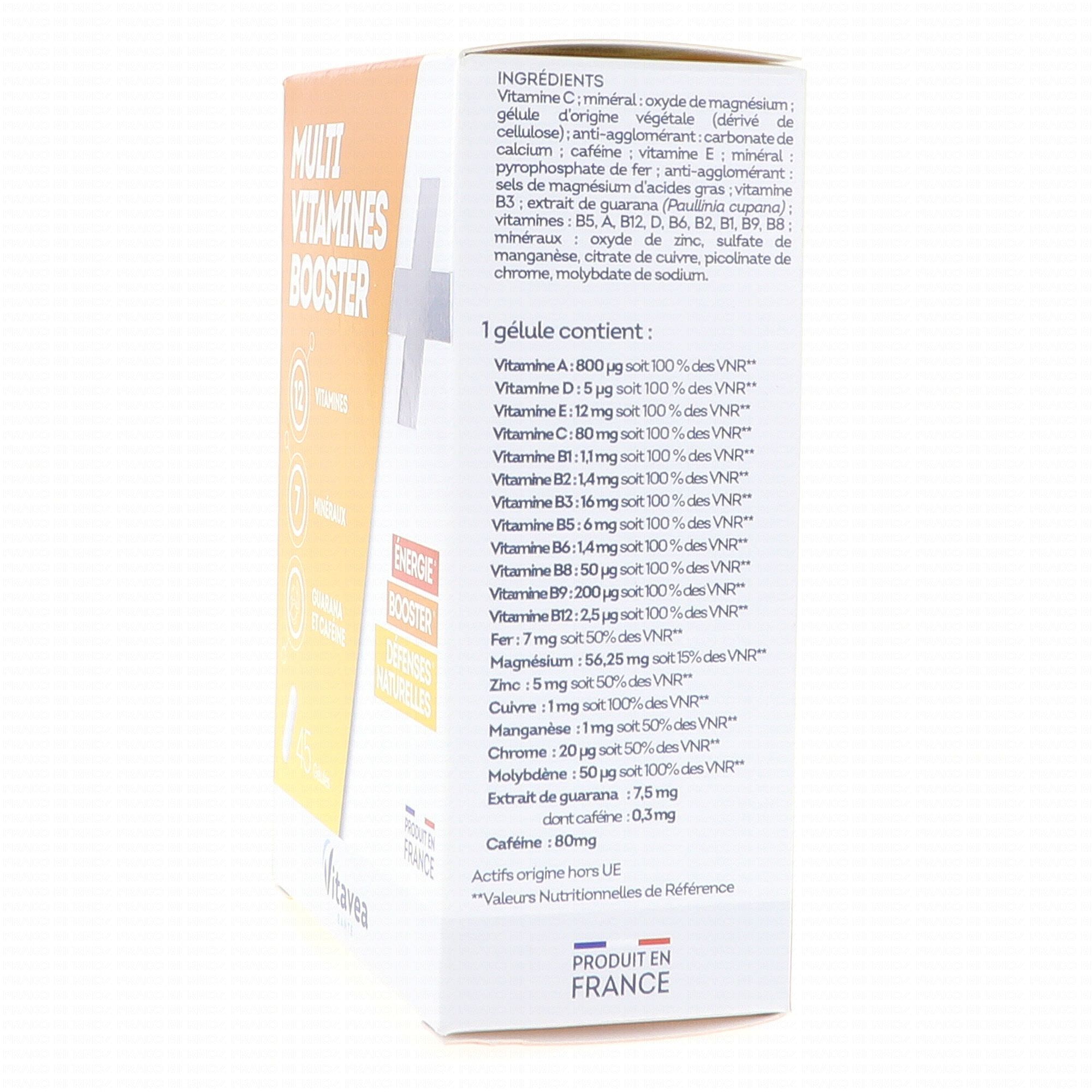 VITAVEA Multi Vitamines Booster 45 gélules contient les éléments suivants :